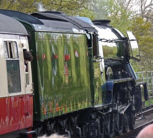 A rescue operation was put together and new owners purchased the engine and it arrived back in the UK in February 1972. It split its time between mainline charters and work on the now growing number of heritage railways. In 1988 it visited Australia and set the record for the longest ever non-stop run for a steam locomotive (Alice Springs to Perth). Returning the opposite way to which it went out it became the first, and possibly the only, Steam locomotive to have circumnavigated the world.