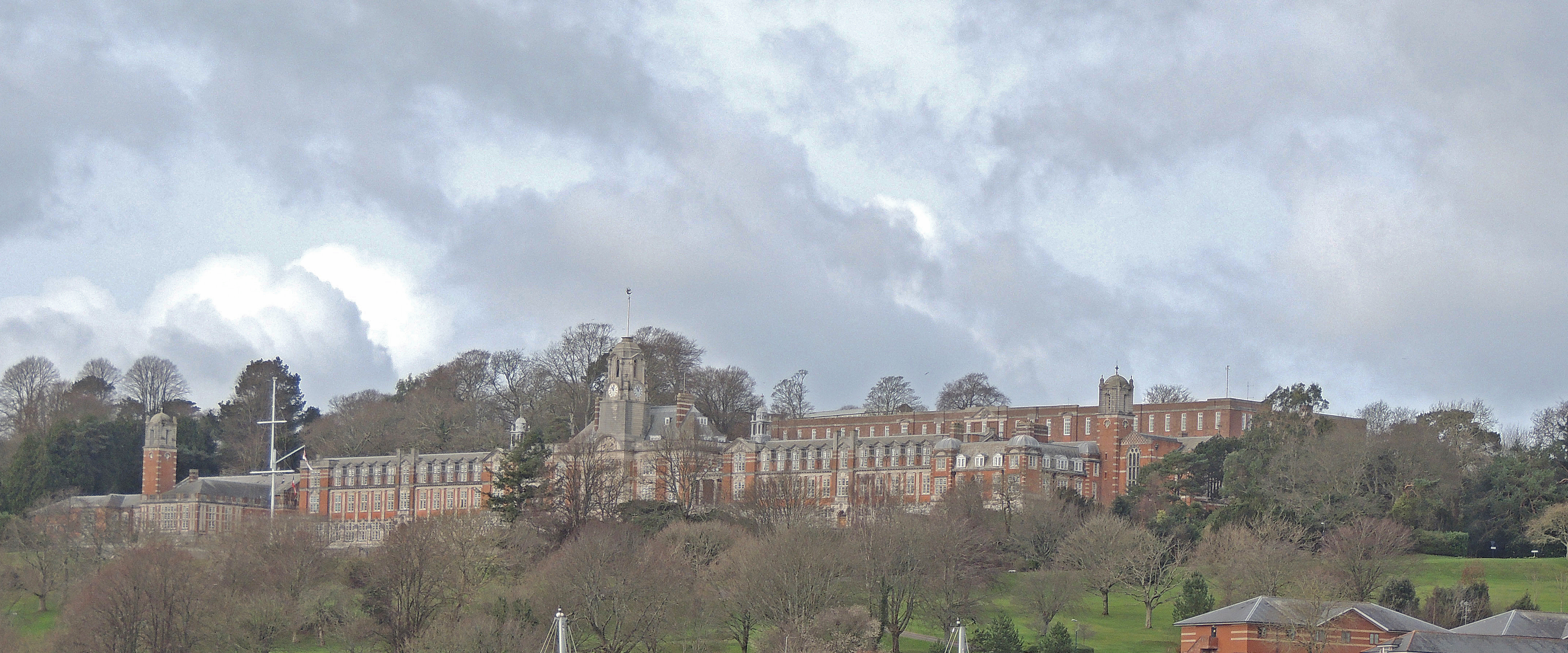 It is home to the Royal Brittania Naval College, founded in 1863 and housed in an impressive hillside building overlooking the town, completed in 1905.