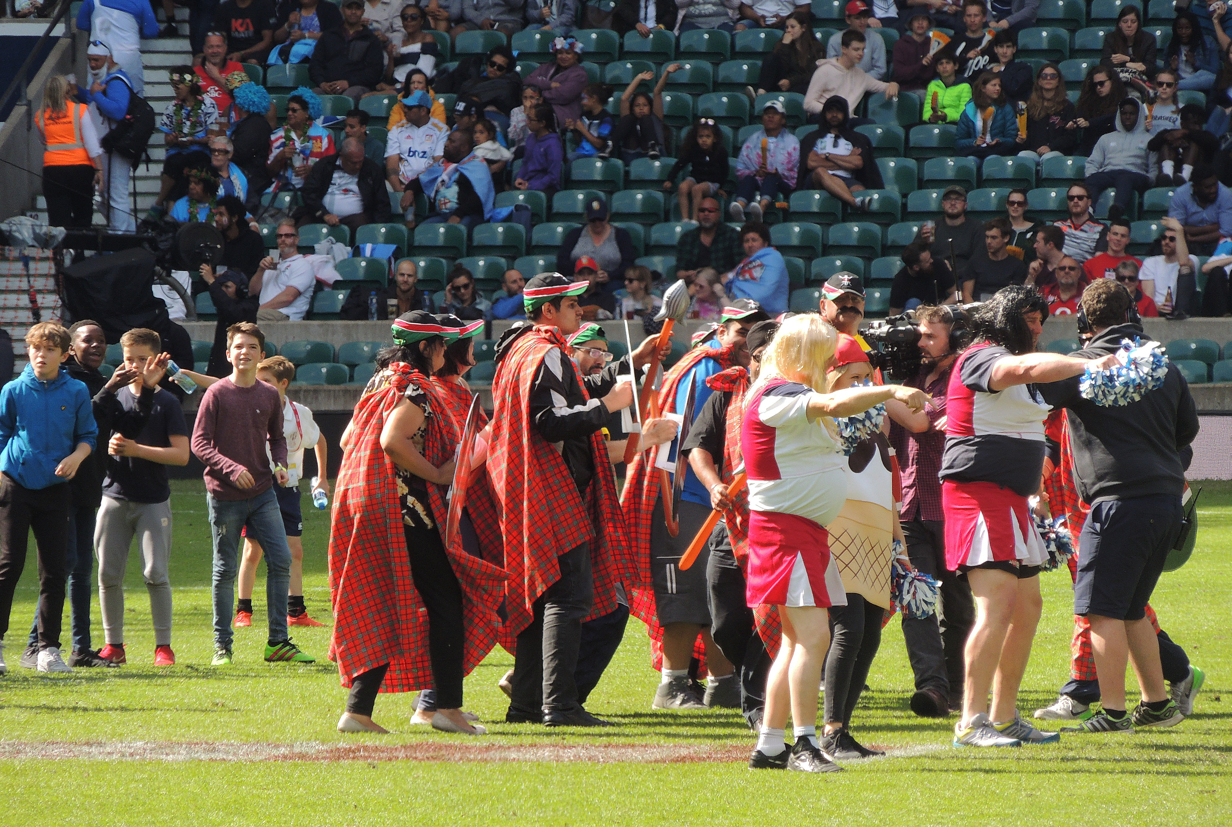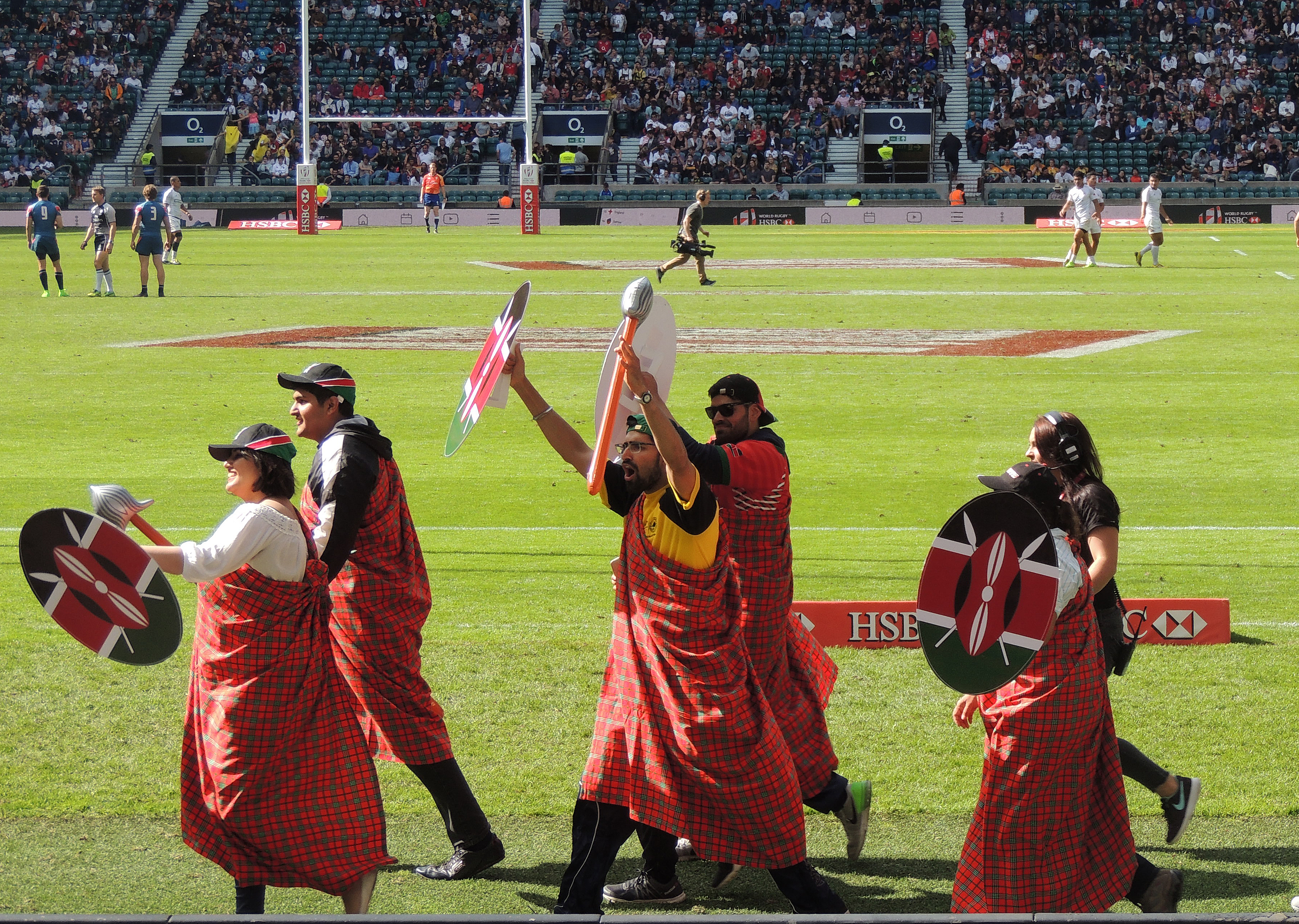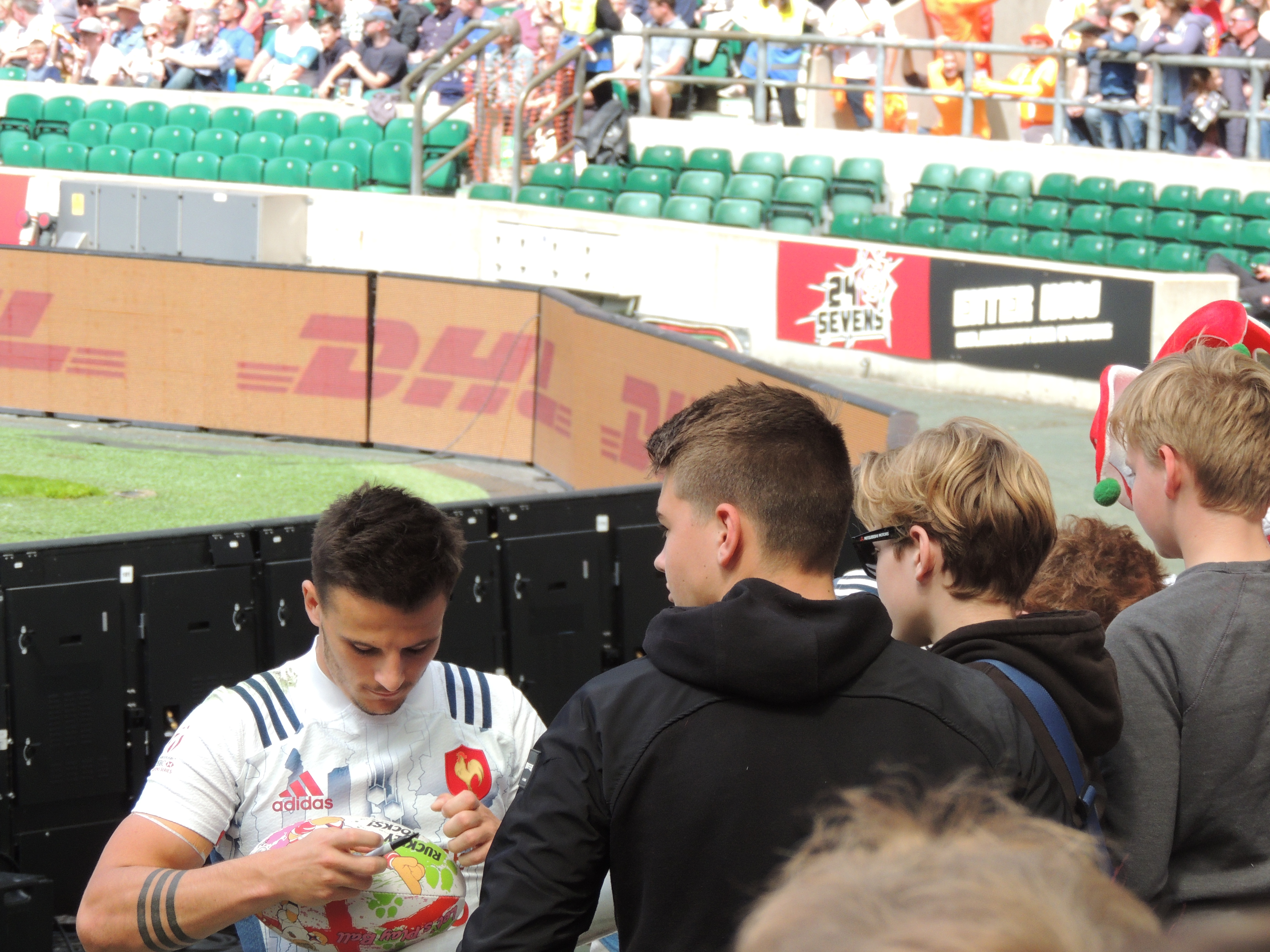 Twickenham Stadium on a lovely dayDance CompetitionFancy dress has always been part of the occasionHere come the Girls!No opportunity for merchandising is missed – the ball carrierA French player signs autographs for fans