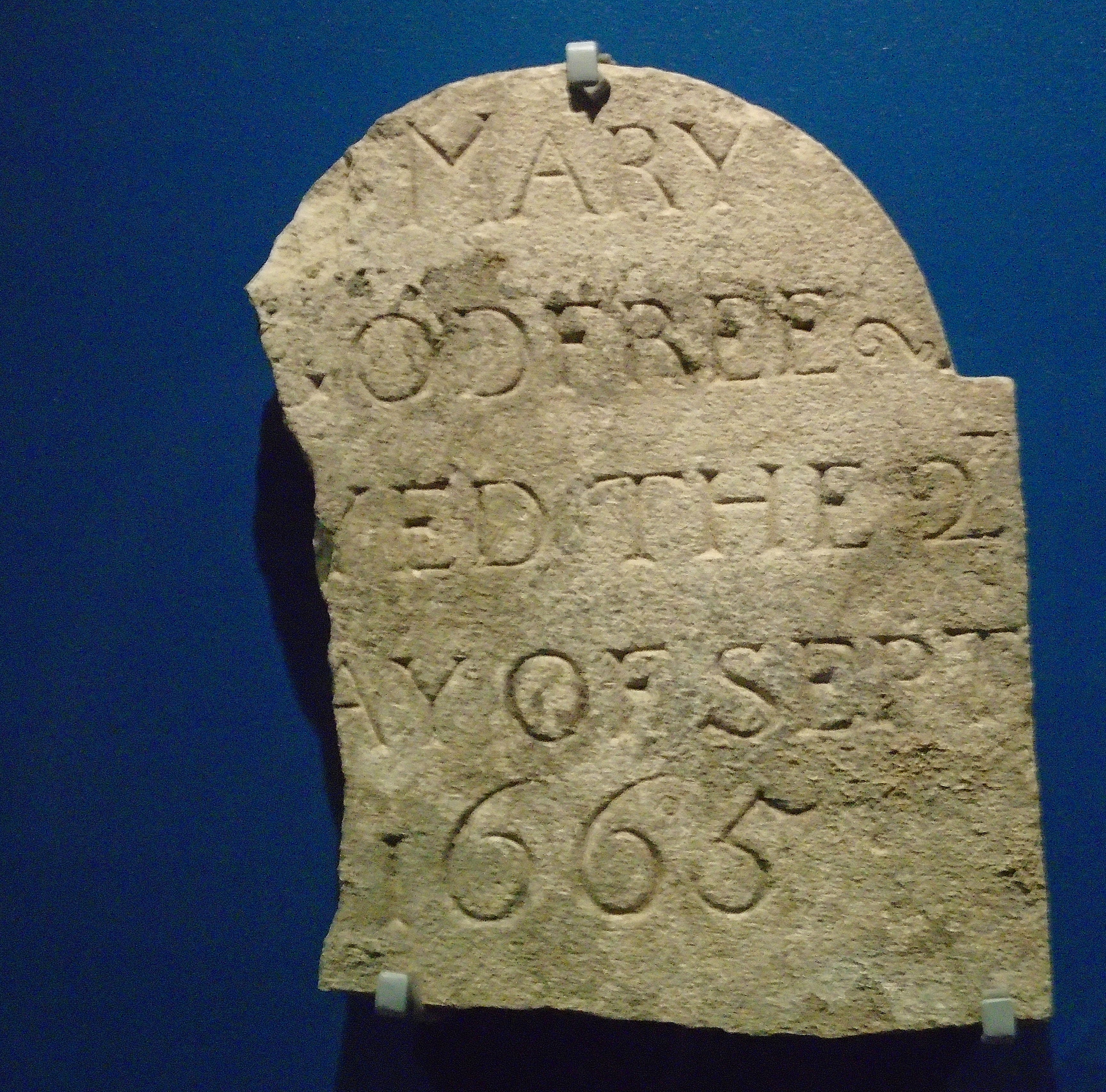 Mammoth TuskMesolithic FlintsRoman writing StyliiBone ice-skate. records as early as 12th-century record people strapping pieces of bone to shoes and skating on frozen marshland. Found at Moorfield Marsh.Tombstone from New Churchyard (1570-1740). 1665 was the year of the great plague in London. Testing remains from this cemetery has revealed the first identification of the 1665 plague pathogen enabling scientists to formally link it to the Bubonic plague of the 14th century, known as the Black Death.Food manufacturers Crosse and Blackwell were founded in 1830 and moved to a site near Charing Cross Road in 1838. Archaeologists found over 13000 pieces of ceramics on this site.