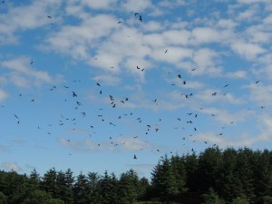 Our next stop was Nant Yrarian, where the local Red Kites are fed. This has two purposes – one to supplement the natural food available in times of shortage and thus maintain a healthy population and secondly as a way of introducing the public to the wildlife around then. It is quite a spectacle and we estimated that at feeding time there were about 150-200 present.