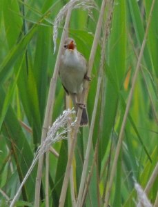 The first of these was a Marsh Warbler. Although common on the European continent, they are rarely seen in this country and so this one which had appeared at Minsmere that morning was the top target. It was a very obliging bird and although it spent some time playing hide and seek behind bushes, whilst singing loudly to let us know it was there, we eventually got great views.