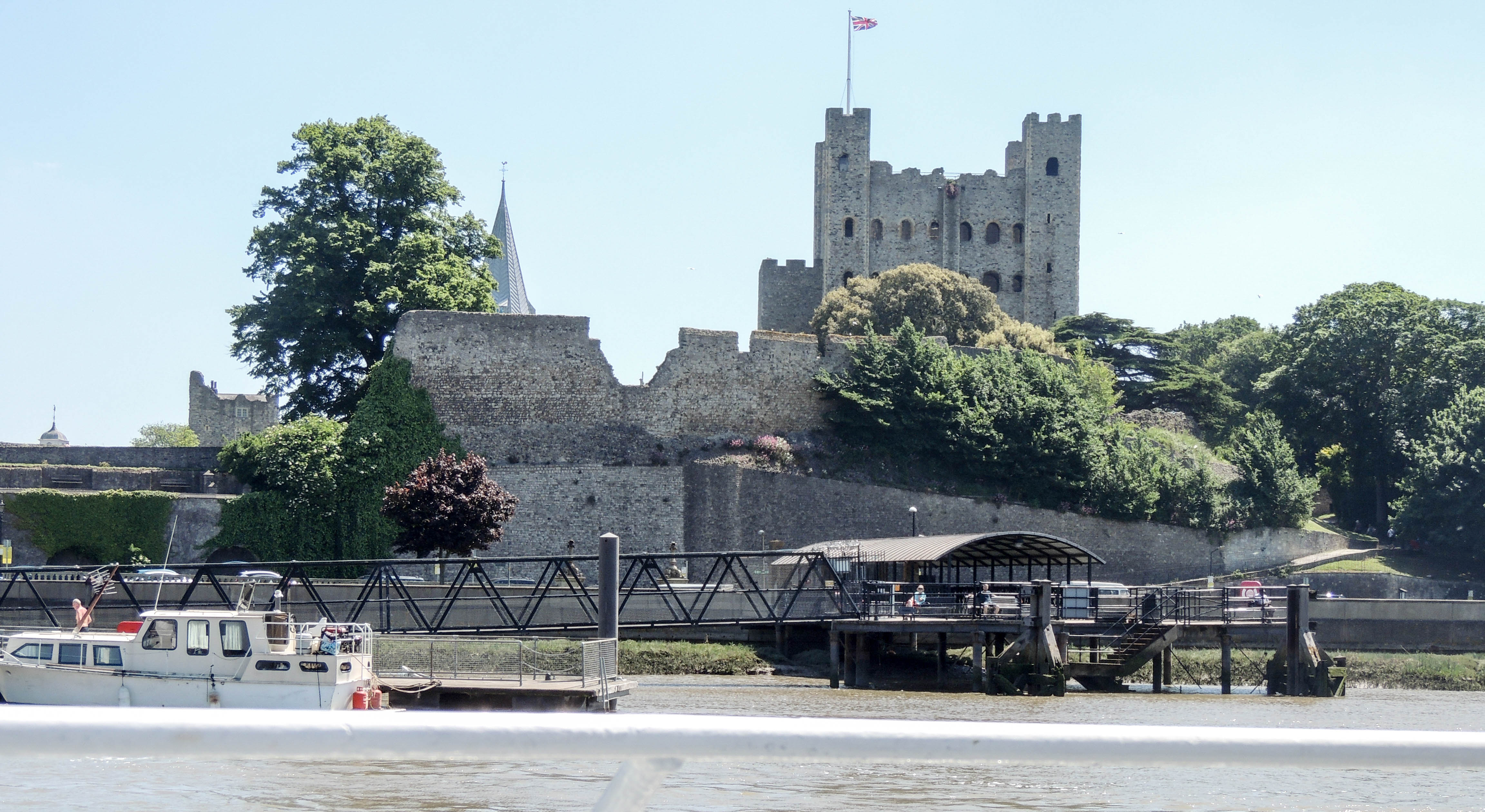 Our boat – The Jacob MarleyLeaving the pier at Rochester with the Castle in the background.The Old Russian Submarine moored at StroodFrindsbury ChurchRochester Cathedral and Castle from the riverA reminder of Rochester’s maritime heritageAn old accommodation bargeChatham Riverfront