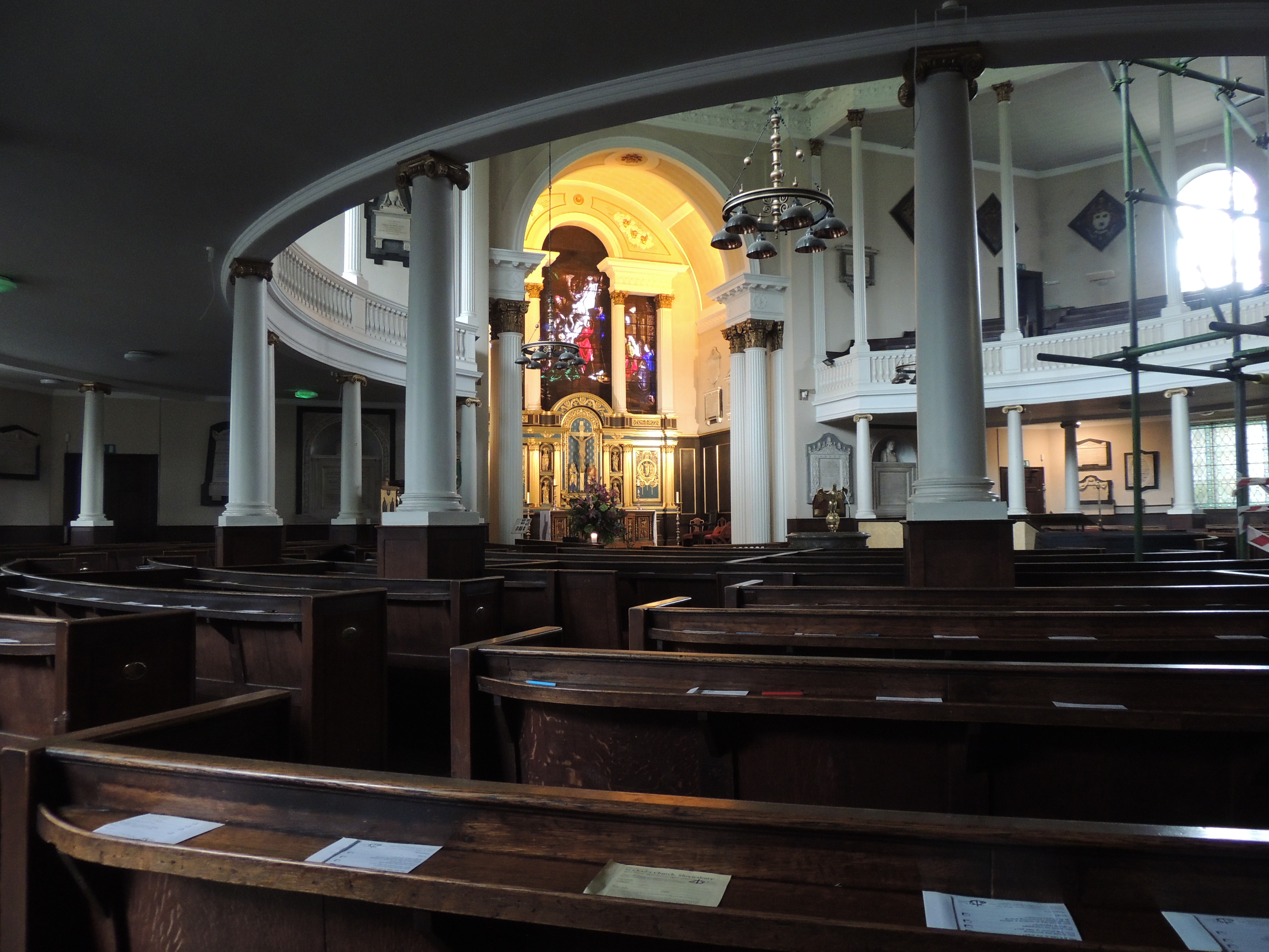 There has been a church in Shrewsbury dedicated to St Chad, the first Bishop of Mercia (7th century AD) since the early Middle Ages. In 1788 the Old Church fell down and it was decided to move the church to a new site. The church council approved a plan for a traditional shaped church, but due to a “misunderstanding”, the architect and builders used the plans for a circular church that had actually been rejected. By the time this was realised it was too late to go back and so a circular church was built. It was started in March 1790 and opened in August 1792.