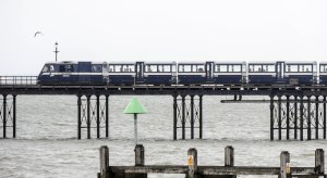 The original wooden pier in Southend was built in 1830 and by 1851 it had acquired a horse-drawn tramway taking people from the promenade to the pierhead. The current pier was built in 1897 and was designed with a two track electric railway to replace the horse-drawn trams on the 1 1/4 mile journey. The original rolling stock was replaced in 1949 with stock similar to that running on the London Underground.