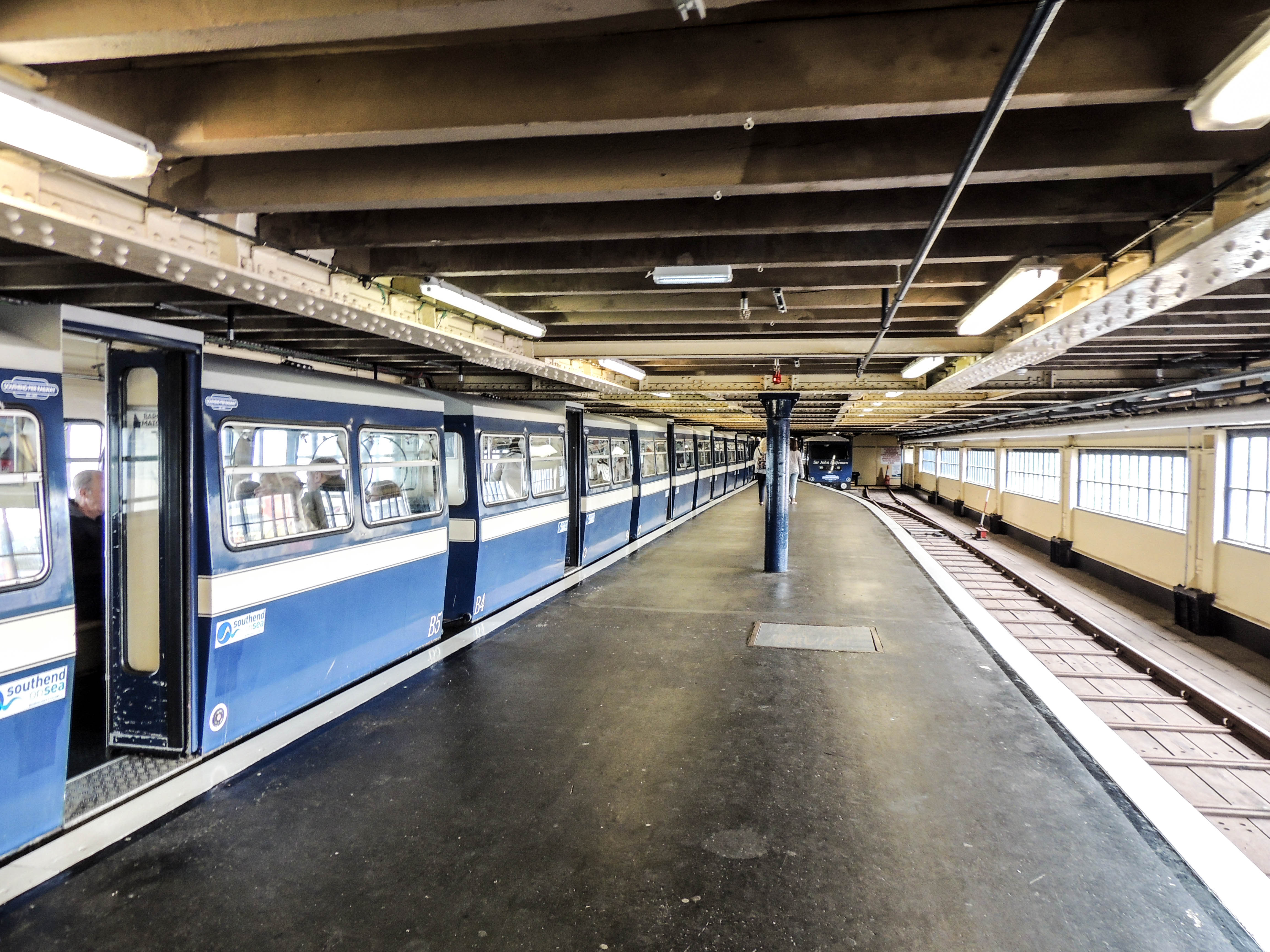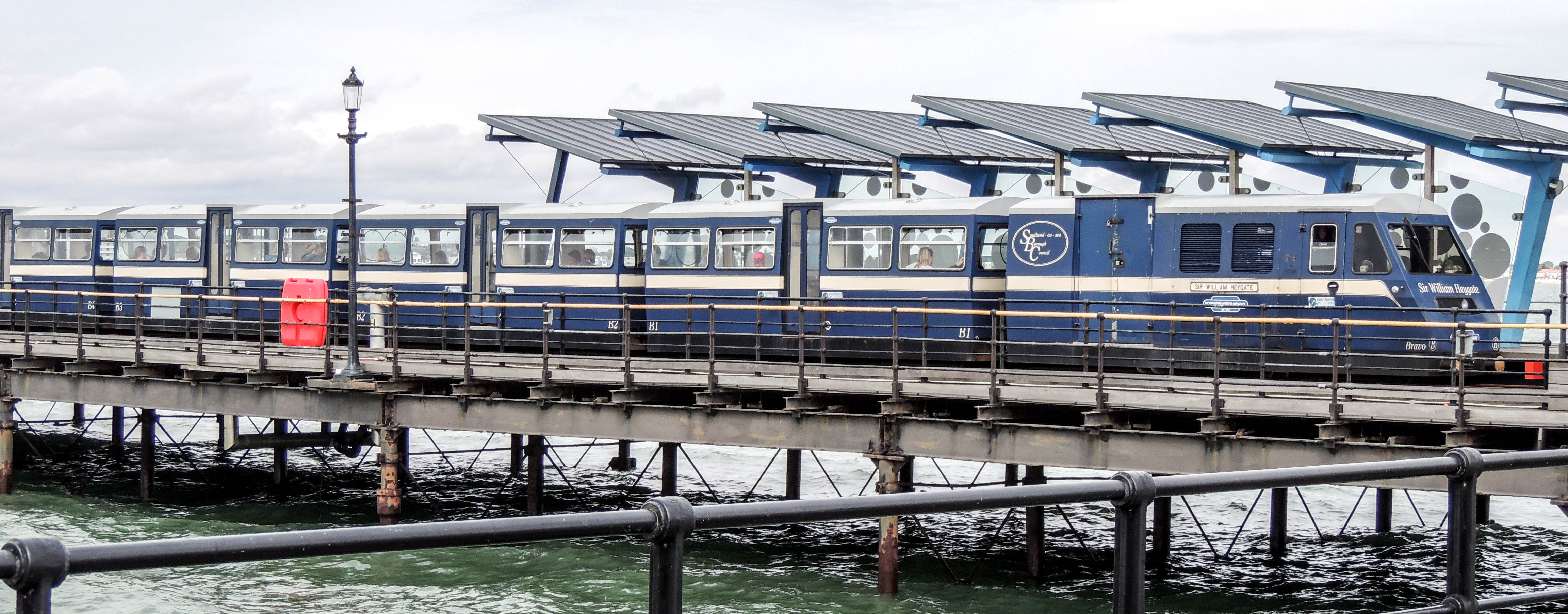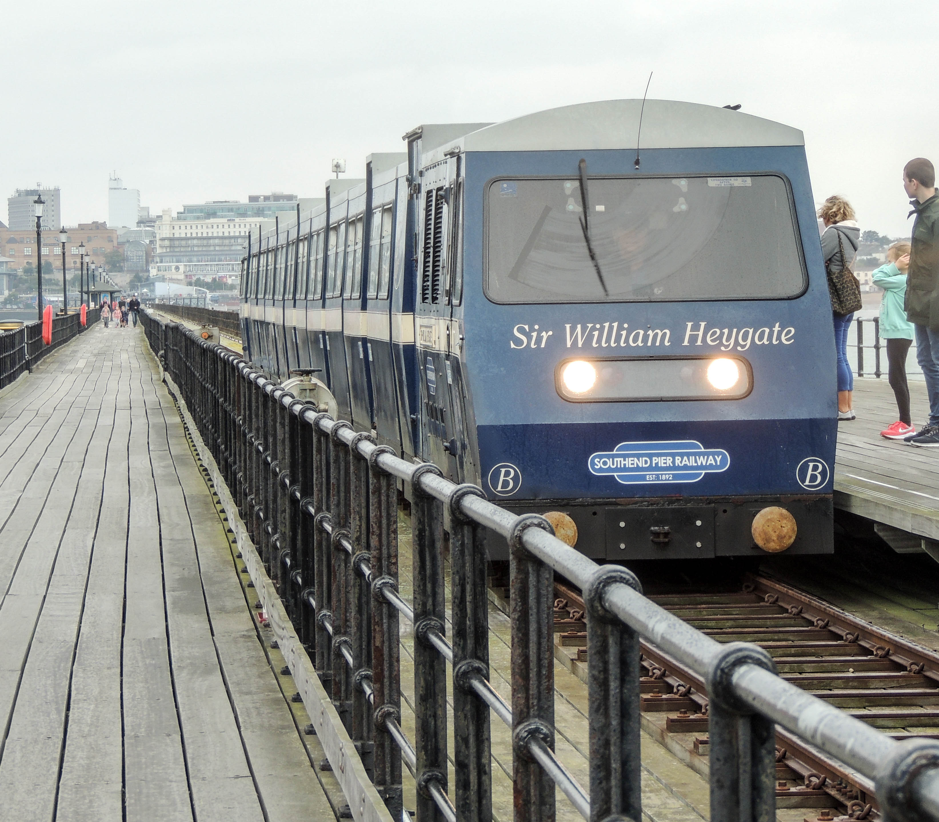 The original wooden pier in Southend was built in 1830 and by 1851 it had acquired a horse-drawn tramway taking people from the promenade to the pierhead. The current pier was built in 1897 and was designed with a two track electric railway to replace the horse-drawn trams on the 1 1/4 mile journey. The original rolling stock was replaced in 1949 with stock similar to that running on the London Underground.
