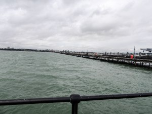 The first pier at Southend was a wooden construction built in 1830. But by the middle of the century the increased tourist numbers had begun to take their toll and in 1887 it was decided to replace it with an iron pier. Opened in 1889, extended in 1897 with an upper deck was added in 1907, followed by a further extension in 1927. In 1959 a fire destroyed the Pavilion located at the shore end of the pier trapping over 500 people on the seaward side who had to be rescued by boat. In 1976 fire destroyed much of the pierhead and the following year buildings at the shore end of the pier were damaged by another fire. It was a dark time for the pier as in the following year the pier’s electric railway was closed. In 1980 the council announced that the pier was to close but reversed this decision following a local protest. In 1983 a grant was given to the pier as a historic building which allowed repairs be made and these were completed in 1986 and included the provision of a new diesel train service from the shoreside to the pierhead. However within a couple of months, a boat had crashed into the pier severing the new pierhead from the rest, in the process destroying the lifeboat station and it was not until 1989 that the pier fully reopened. Further renovations to the pierhead were carried out in 2000 creating a new sundeck and building a new lifeboat station. The pier’s fiery history has continued. In 2005 a fire destroyed some buildings at the pierhead and a new pavilion and railway station have been constructed since to replace the ones destroyed.