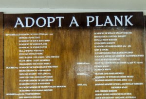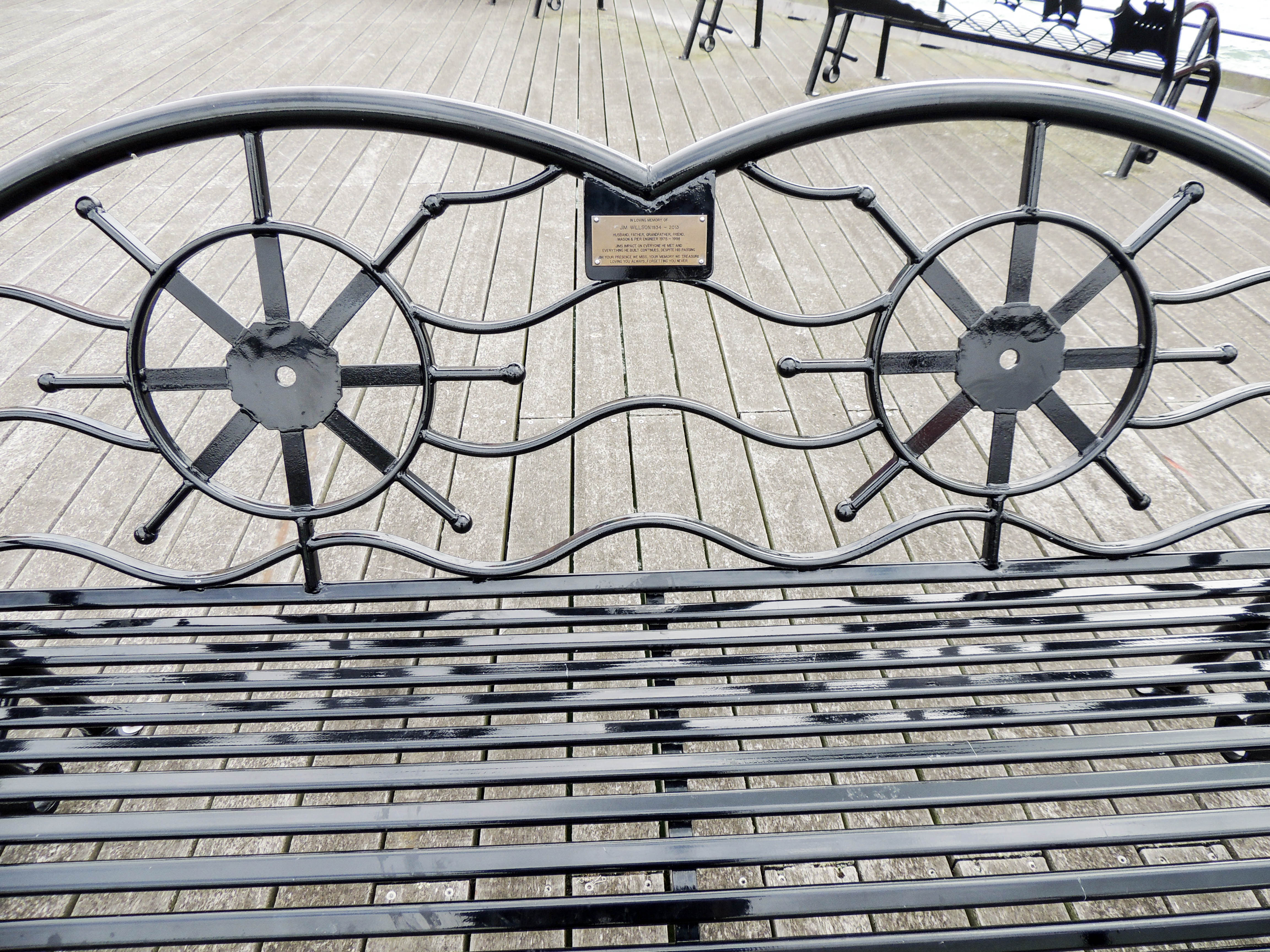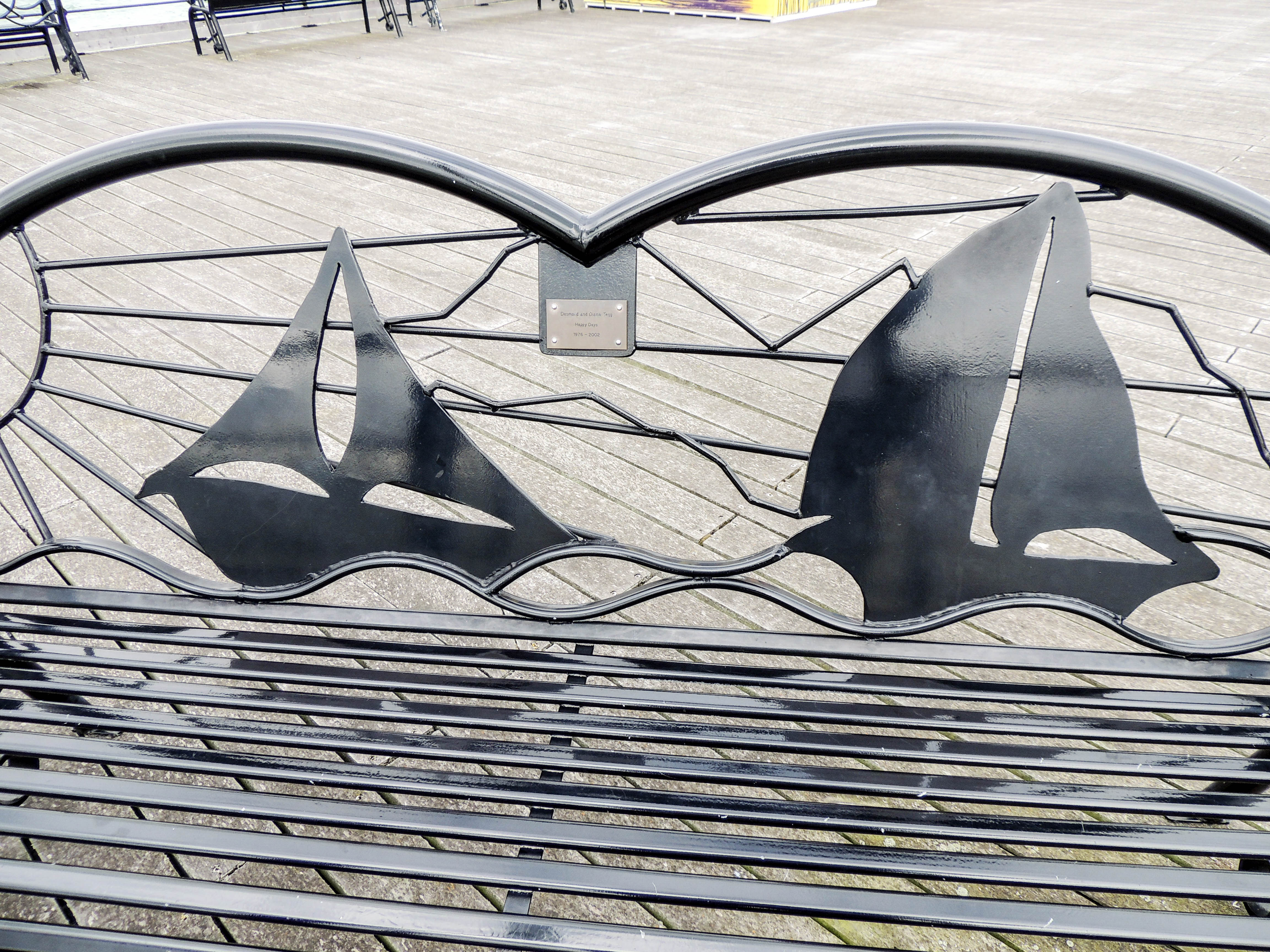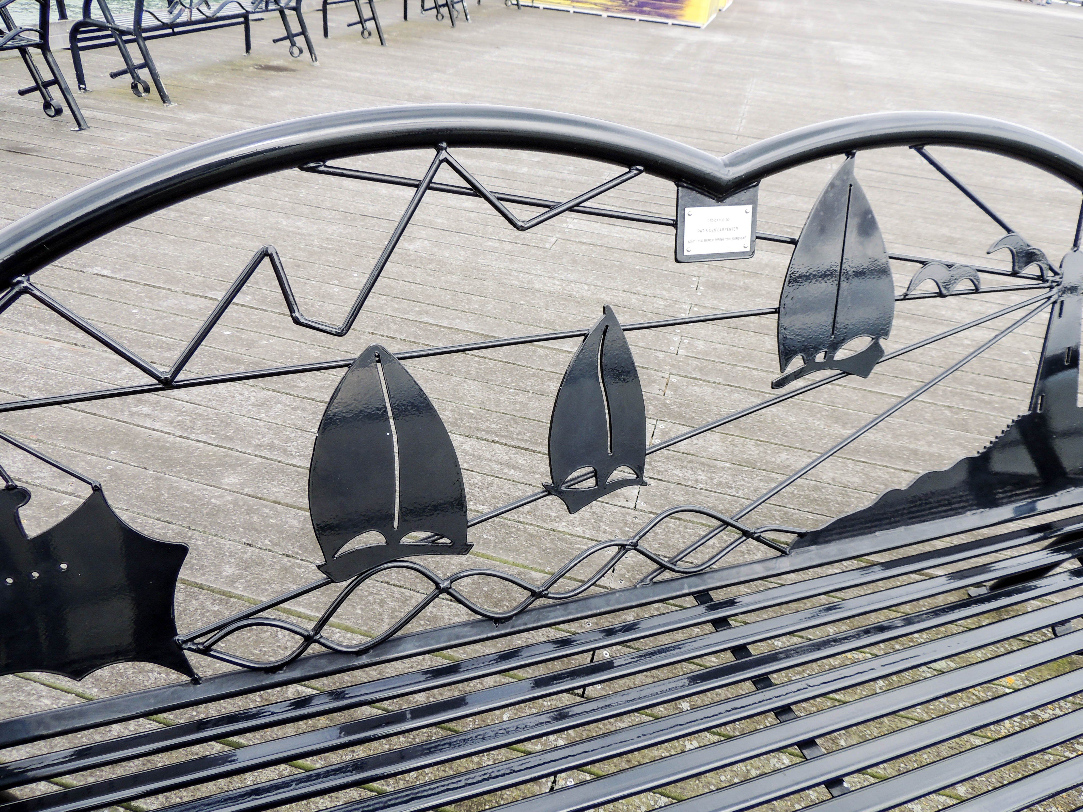 Nautically themed seating on the pier
