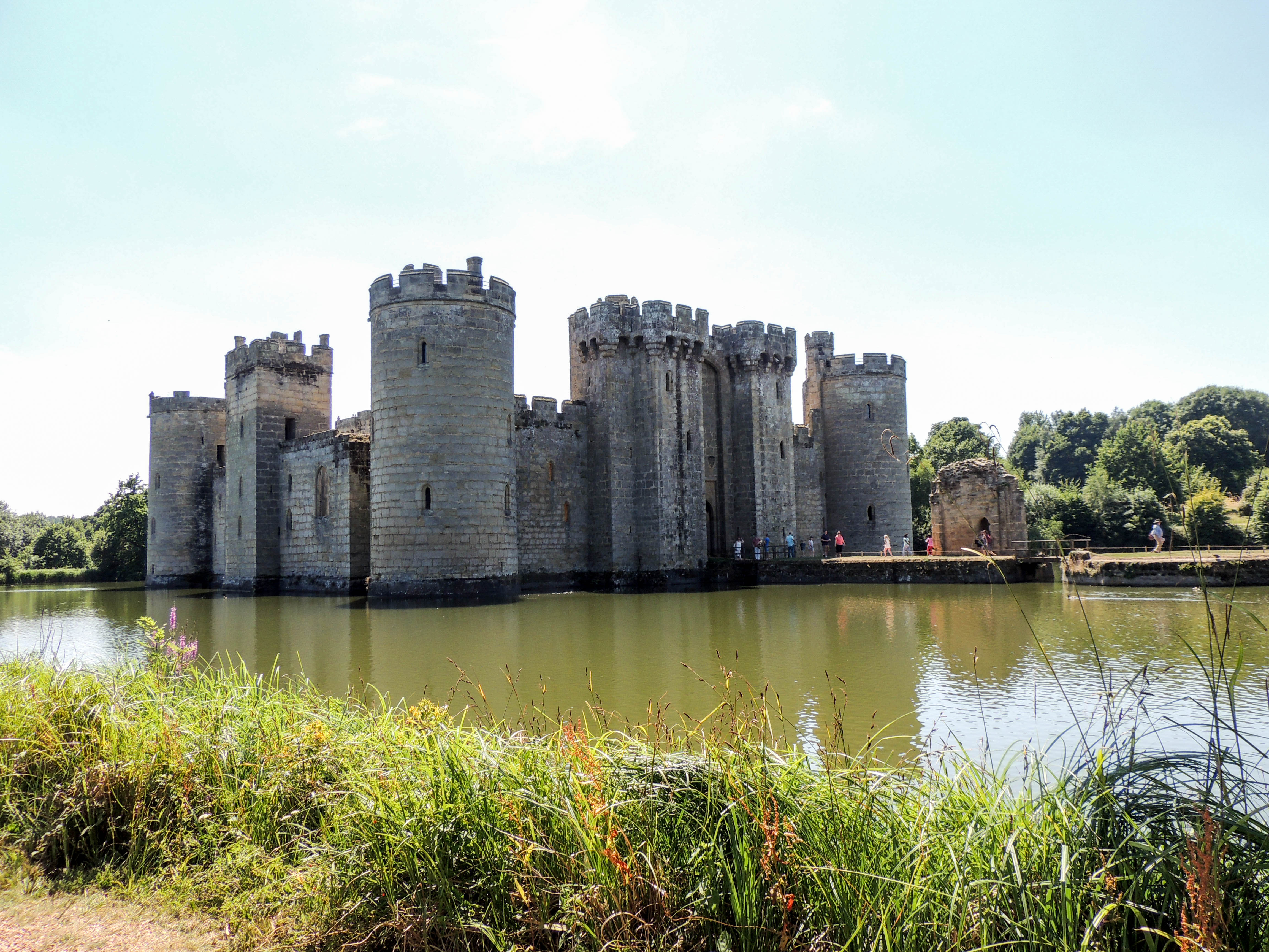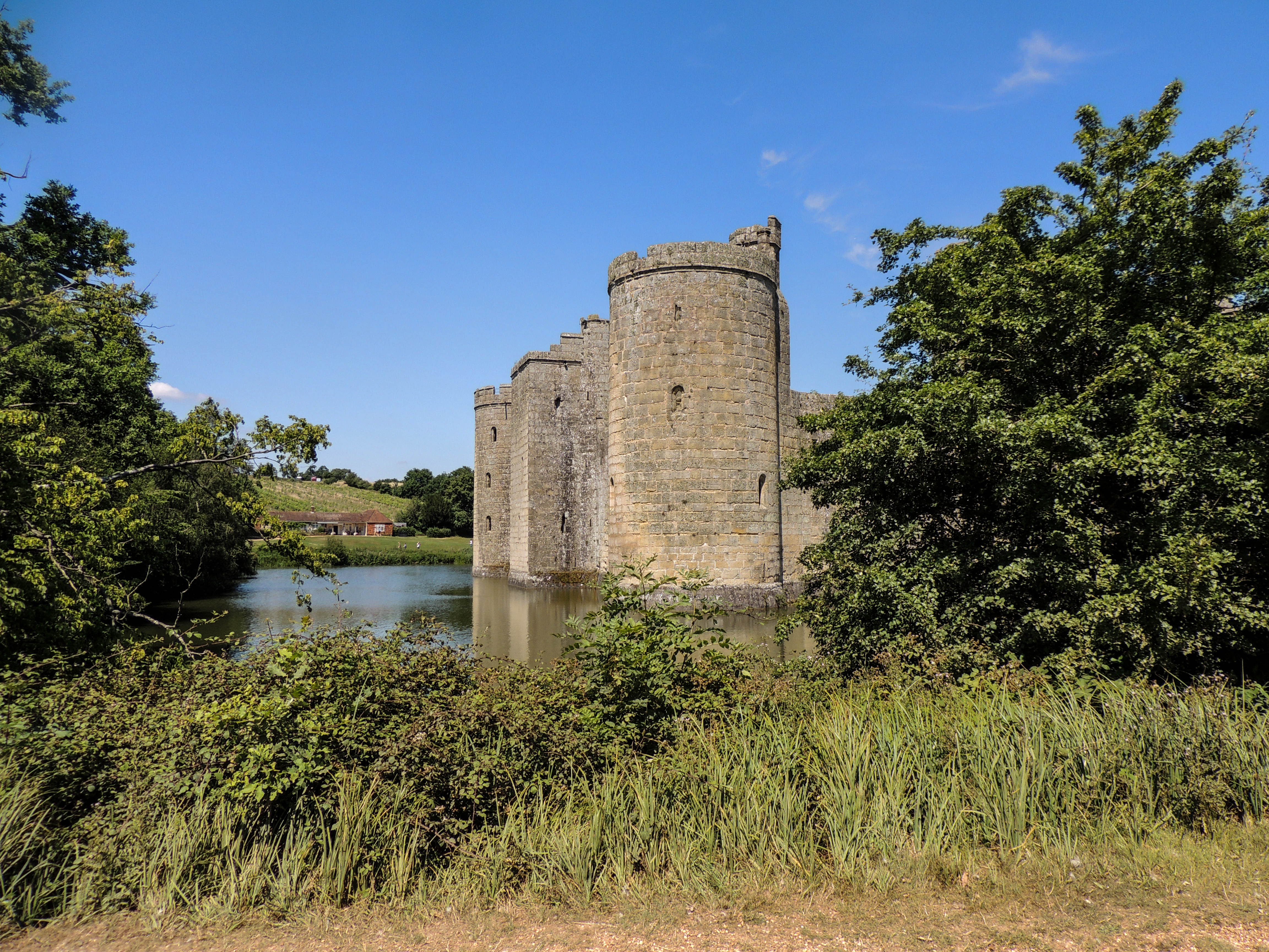 Bodiam Castle was built in 1385 as a protection against French invasion during the 100 years war. It is unusual in design as it has no central keep. Despite its initial purpose, Bodiam managed to survive without being involved in any military action. It was surrendered by the Lewkner family in 1483 when threatened with siege by forces supporting the House of York. It was returned to them following the accession of Henry VII. During the civil war, it was sold by Lord Thanet, a Royalist, to pay the fines levied by Parliment and they took the decision to dismantle some of the defences. The castle was restored by its owners during the 19th and 20th century and in 1925 it was given to the National Trust and opened to the public.