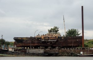 The Richard Montgomery was an American Liberty boat wrecked on the Nore sands at the mouth of the Medway in 1944. Her cargo was 1400 tonnes of high explosives, which it was deemed too dangerous to try and salvage. Much debate has ensued and continues to rage, about the effect of any potential explosion on the surrounding area. These range from creating a tsunami which would drown the estuarine towns such as Sheerness and Southend to little or no noticeable effect. The official line is that after 70 plus years underwater it is unlikely that the explosives are still in a viable state and that the explosive risk is very low. Nether the less the area around the wreck remains a prohibited area.