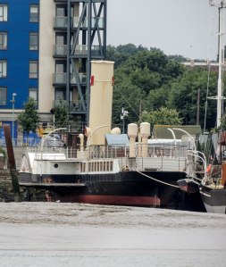 A steam paddle tug built on the Clyde for the Tees Conservancy. Its main function was towing barges but it also had a licence for 144 passengers. In 1959 the boat and its crew were arrested when it was found to be towing barges containing illicit alcohol as part of a smuggling ring. It was withdrawn in 1967 and presented to the local council. Between 1971 and 1976 it was docked at Stockton and was being restored as part of a youth experience programme funded by the UK government. However in 1976 funding was withdrawn and the project folded. The council decided to scrap the tug. It was purchased by the Medway Maritime Museum and eventually became berthed in a dry dock at Chatham Historic Dockyard, However, when the Dockyard came into possession of HMS Ocelot, a Chatham built Submarine, the John H Amos had to be moved to another berth where unfortunately it sunk. It was later raised using a crane and now sits on a pontoon awaiting funds for restoration.
