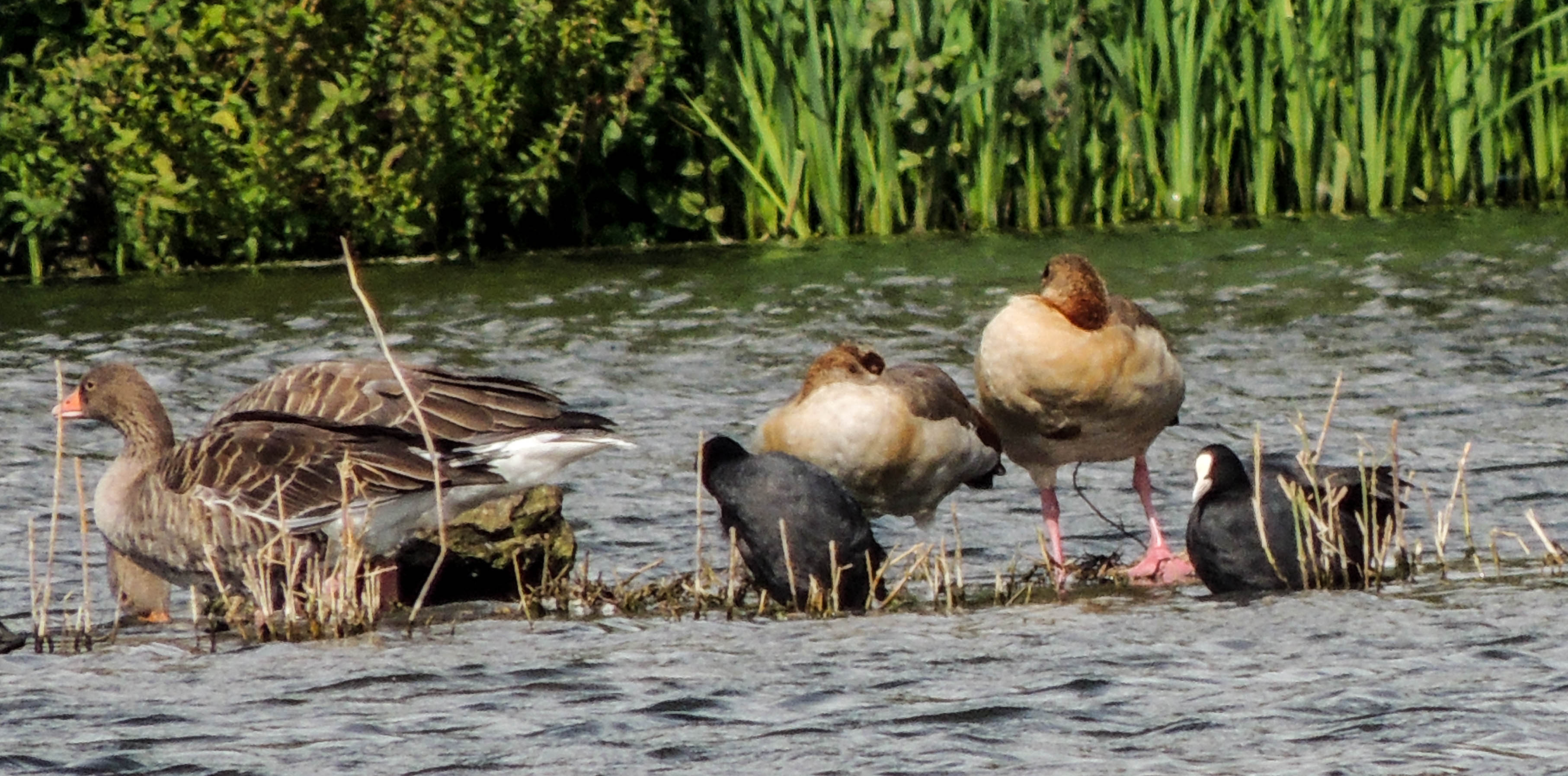 Today we visited Pensthorpe, a nature reserve near Fakenham. It’s a mixture of a wildfowl collection and a wild area. Our first stop is the wader scrape. Unfortunately, the only waders present are a single Green Sandpiper and a pair of Ruff. Egyptian Geese, Canada Geese and Greylag Geese were all present but the highlight was 5 species of birds of Prey that we saw whilst we were in the hide. A Hobby flew over the hide, followed shortly afterward by a Common Kestrel. In the distance, we could see Buzzard and Marsh Harrier. Sue spotted a raptor sitting on a fence post which turned out to be a Sparrowhawk.