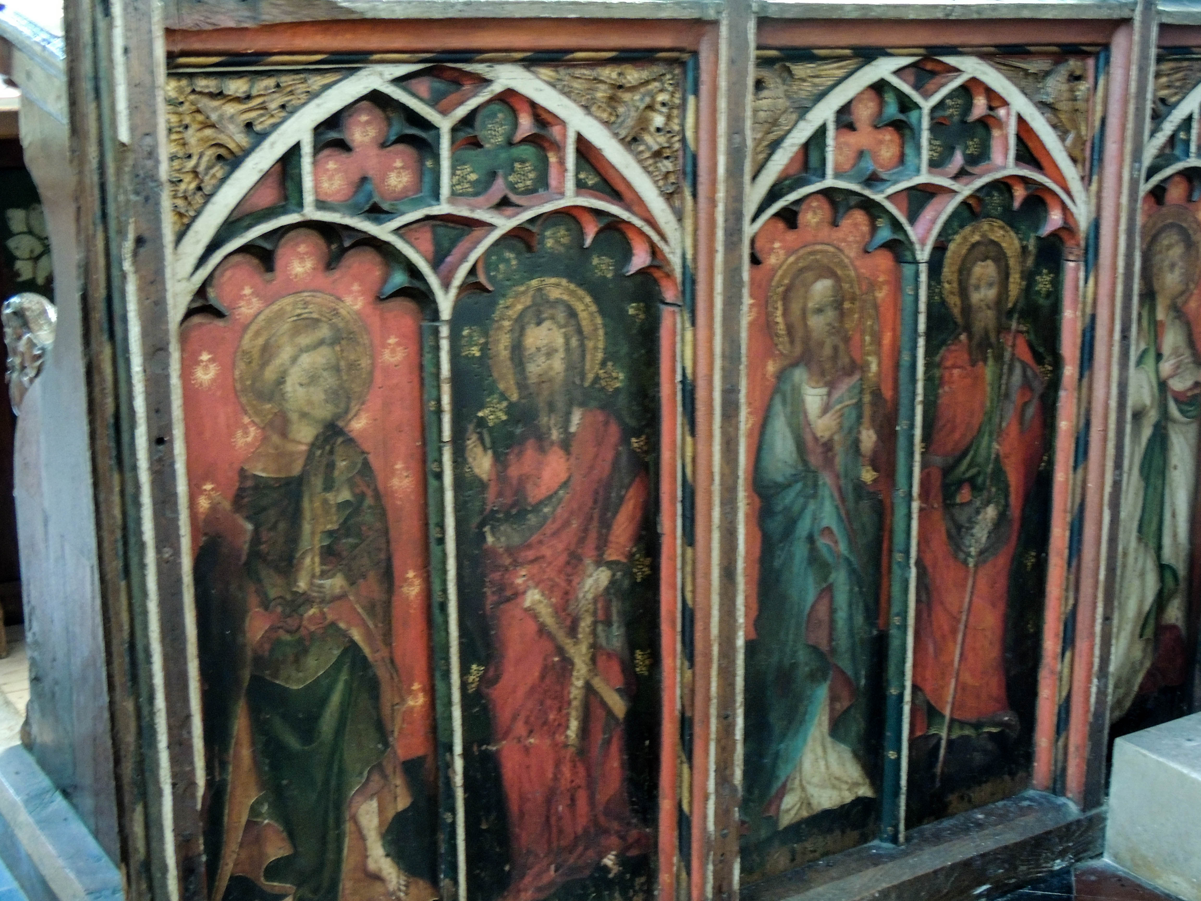 – Rood screen with paintings of the 11 disciples plus St Matthias.