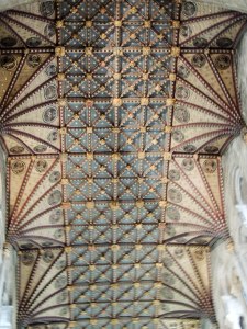 19th-century copy of medieval ceiling. Original had been badly damaged by Parliamentarian musket practice during the civil war.