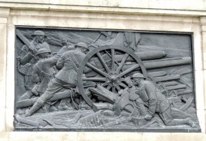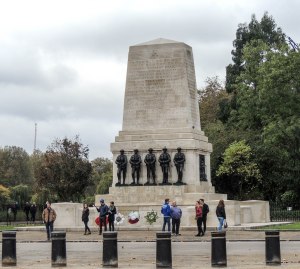 The Guards Memorial, situated opposite the Whitehall parade ground, was designed by the sculptor Gilbert Ledward and was erected in 1926 to commemorate the battles of World War I and in memory of the officers, non-commissioned officers and guardsmen of the royal regiments of Foot Guards who gave their lives during the Great War 1914-1918. It also contains a memorial to the Officers and Men of the Household Cavalry, Royal Regiment of Artillery Corps, Royal Army Medical Corps and other Units who served in the Guard’s Division in France and Belgium 1915-1918.