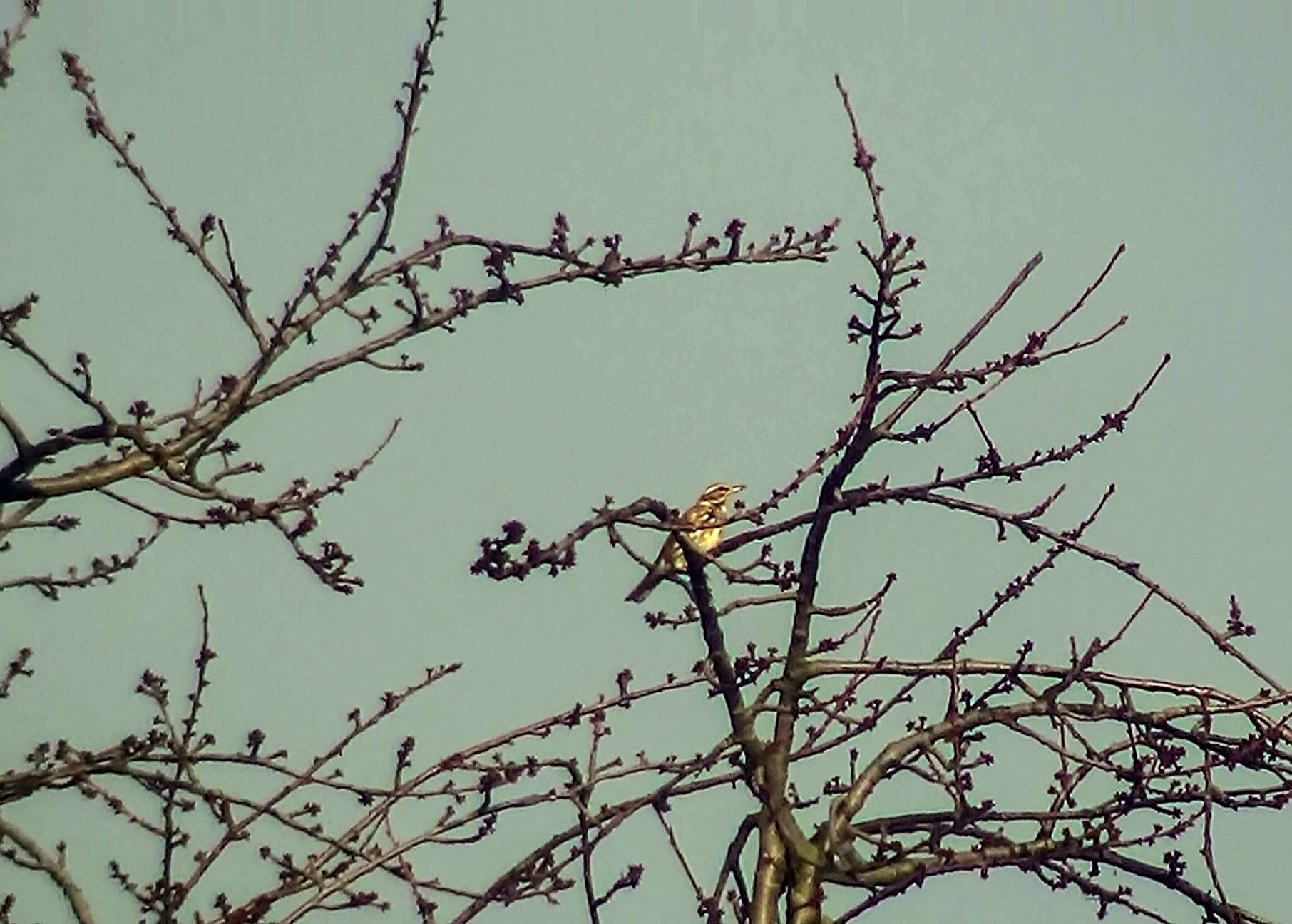 With the light fading, we began to make our way back to the entrance stopping briefly at the Otter enclosure where the resident Grey Wagtail was present and very active. As we left the centre we saw a flock of birds alight in the top of a tree and closer inspection showed that this was the flock of Redwing.