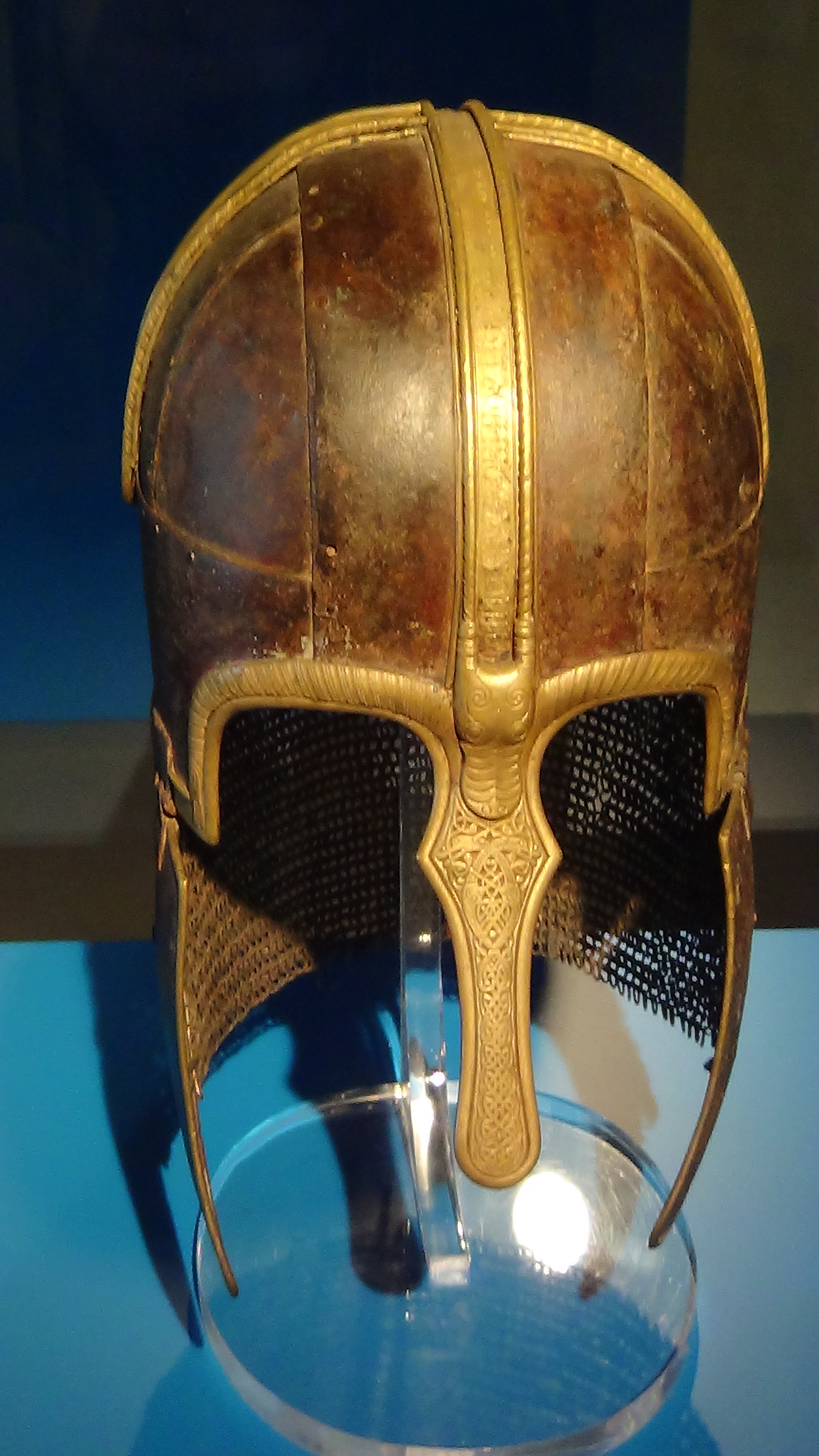 This eighth century Anglo-Saxon helmet was found at Coppergate in York. It is only one of four found in the UK. It was made for member of the Anglo-Saxon royal family called Oshere and his name is inscribed above the nose guard.