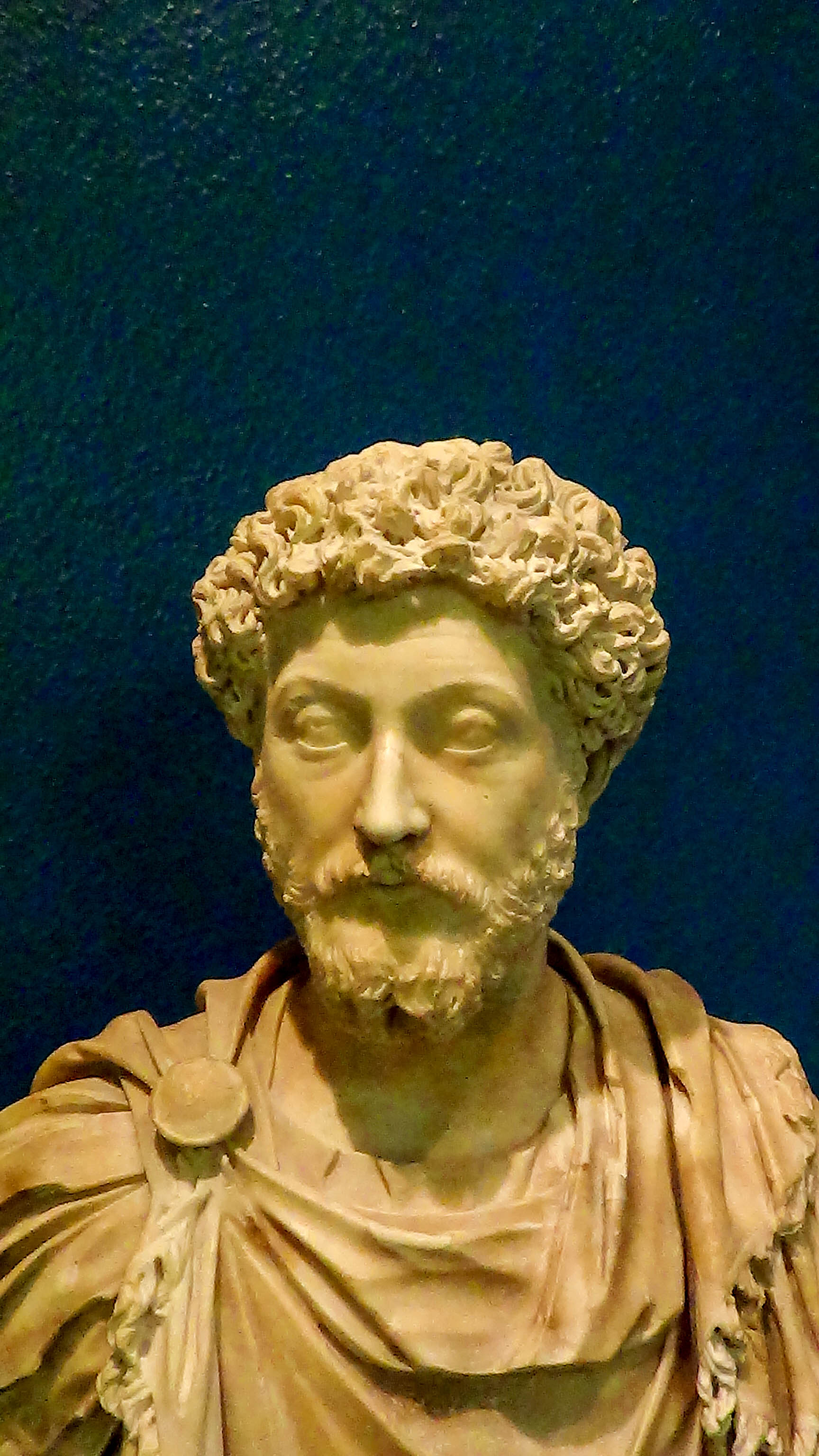 Marcus Aurelius, Emporer and Philosopher, reigned from 161 to 180 AD. He was born in 121 in the province of Iberia (Modern day Spain) into a patrician family. In 136 Emporer Hadrian adopted Marcus’ father in law as his successor, but he died only 2 years later. The Emporer then appointed Aurelius Antoninus, Marcus’ uncle, as his new heir and Antoninus adopted Marcus and Lucius Verus as his heirs. Hadrian was very sick at this time and only 6 months after making the appointments he died and Antoninus took the Imperial throne in his place. In 139 and 140, Marcus served as Consul, having avoided the normal route of advancement by being the heir of the Emporer. Marcus the consul struggled with the life and duties of court yearning for time for his reading and studies. Antoninus died in 161 and Marcus he became co-Emporer with Lucius Verus, even though the Senate wished him to be sole ruler. Lucius Verus died in 169 and Marcus roled as sole Emporer. During his reign, he defeated the Parthian Empire and was successful in the Marcomanic Wars against the Germanic tribes. But he still found time to write about his philosophical beliefs. In addition to his military and scholastic renown, he was also a good administrator and lawyer. Marcus died in March 180 and was succeeded by his son, Commodus, with whom he had ruled jointly since 177. Marcus Aurelius is regarded as being the last of the 5 Good Emporers and many historians take his death and the ascension of his son as being the start of the decline of the Roman Empire.