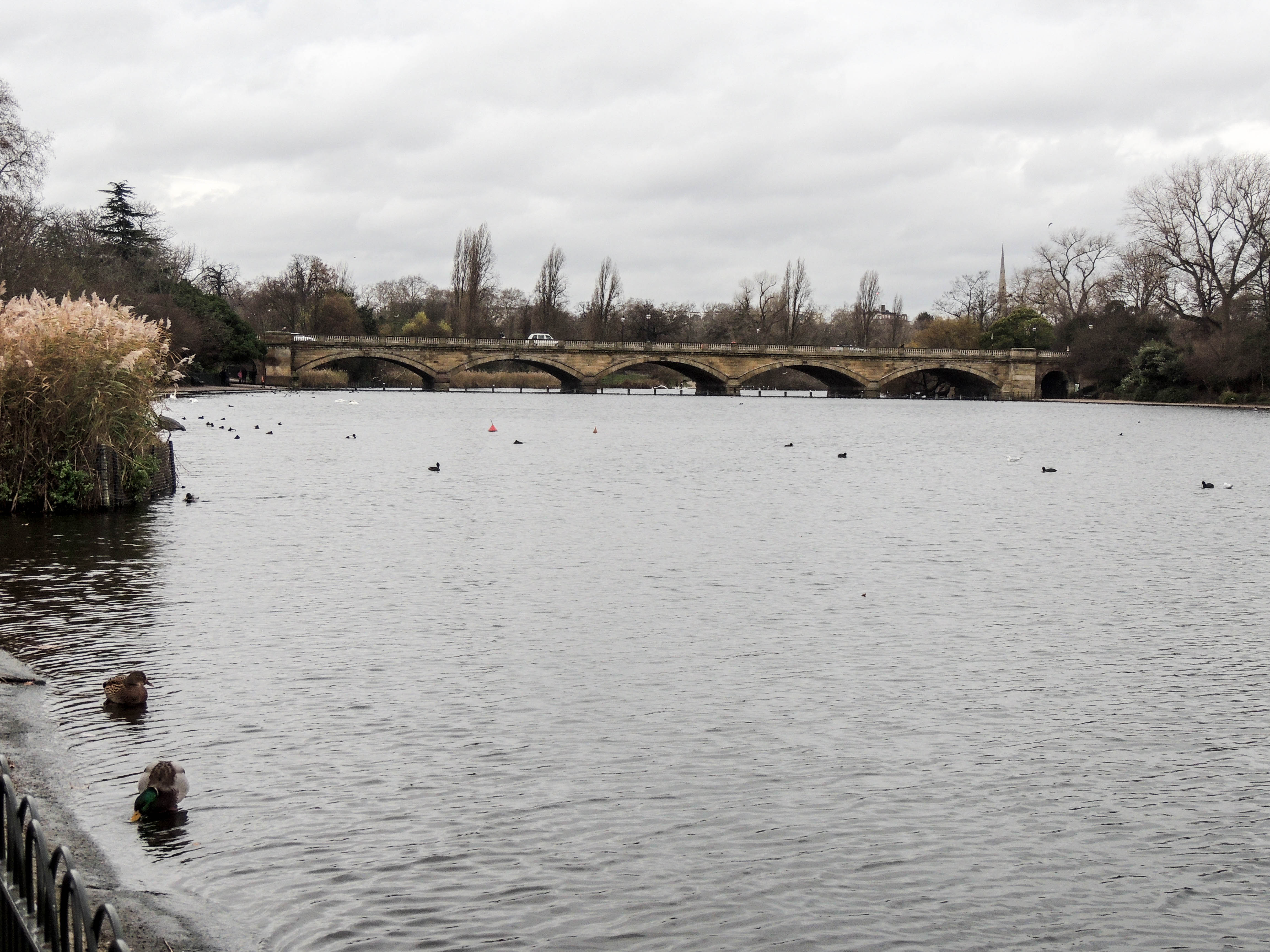 We continued down the long water, crossing over the bridge and walking down to the Lido, where we stopped for a coffee break. Then we turned north again and walked up the other side of the long water.