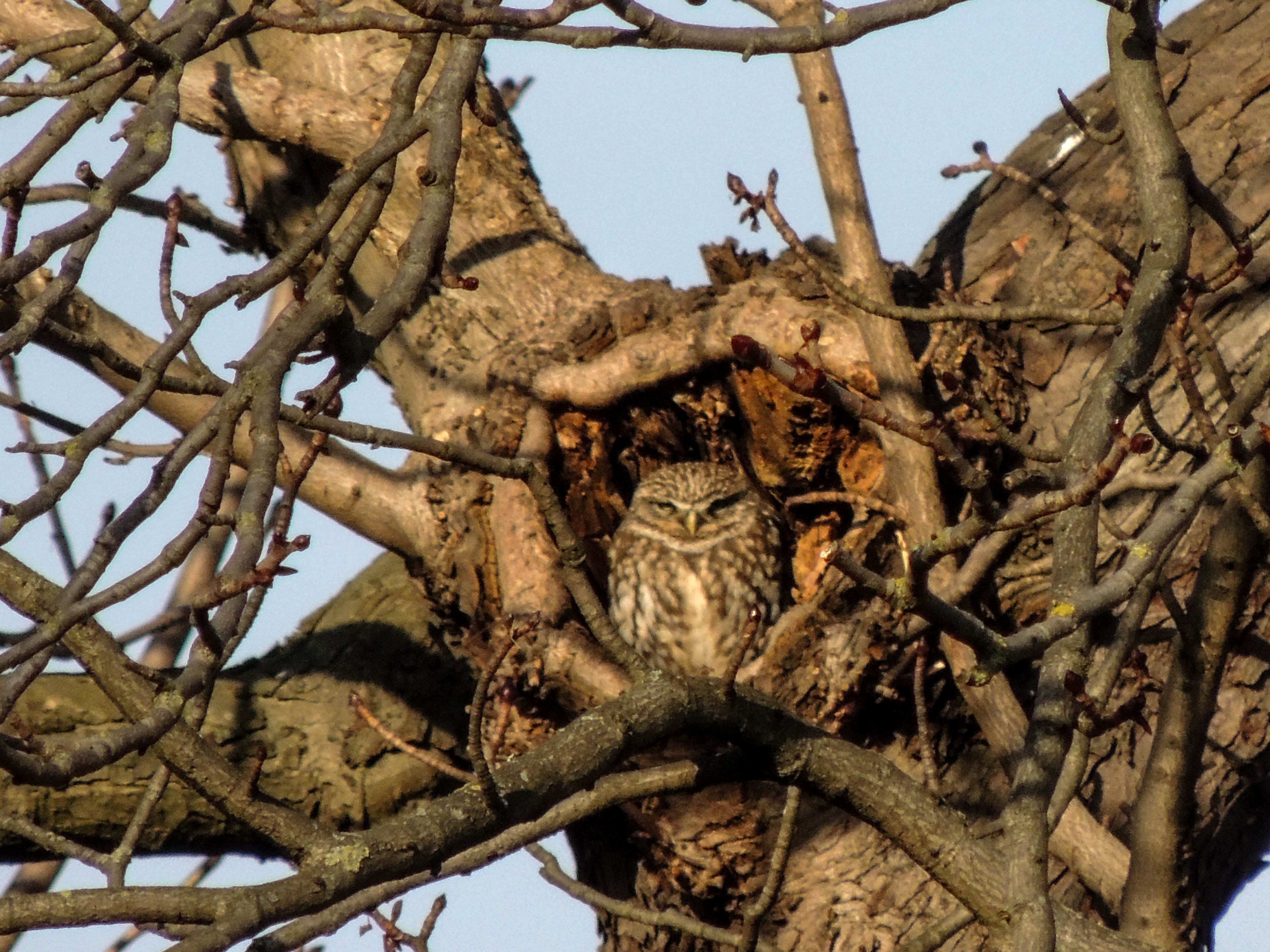 Once again, the Little Owl tree on this side turns up trumps as the owl is sunning itself in the entrance to the hole.