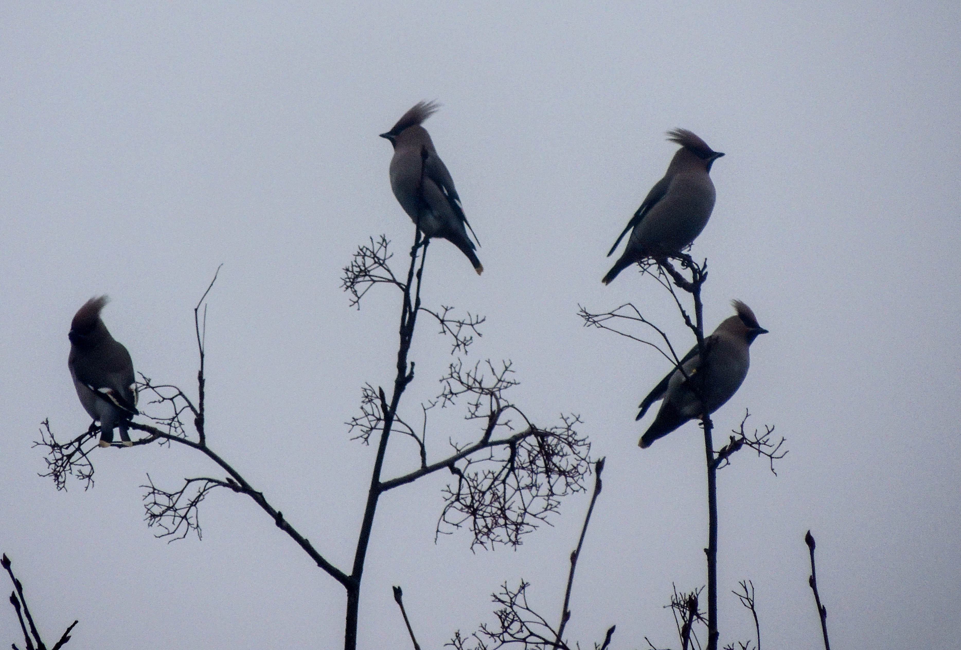 A winters day and a chance for some birdwatching in Kent with Keith. Our first stop was a housing estate in Strood, which is now becoming a regular spot for a wintering flock of Bohemian Waxwings, a Scandinavian bird which only comes to the UK in years when the berry crop on the continent is not enough to sustain them. Some years there are huge eruptions with many hundreds or even thousands of birds coming over the North Sea. This is not one on them and this winter there has only been a handful in the South of England, so we wanted to take the opportunity to see if we could catch up with them. We had to wait over an hour, but eventually, the group of 6 birds dropped into their favourite feeding tree and stayed for about 20 minutes before flying off.