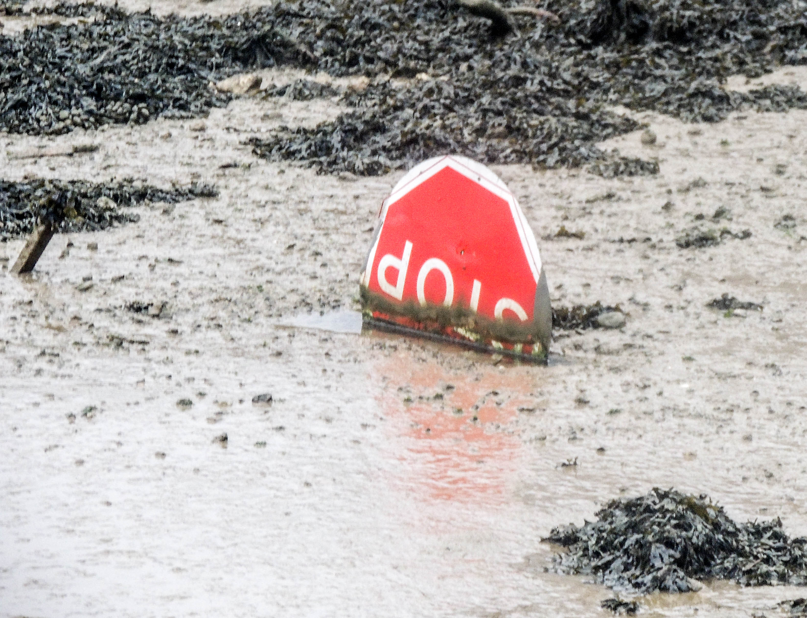 During our walk at Rochester riverside, we saw some strange things buried in the river bed.