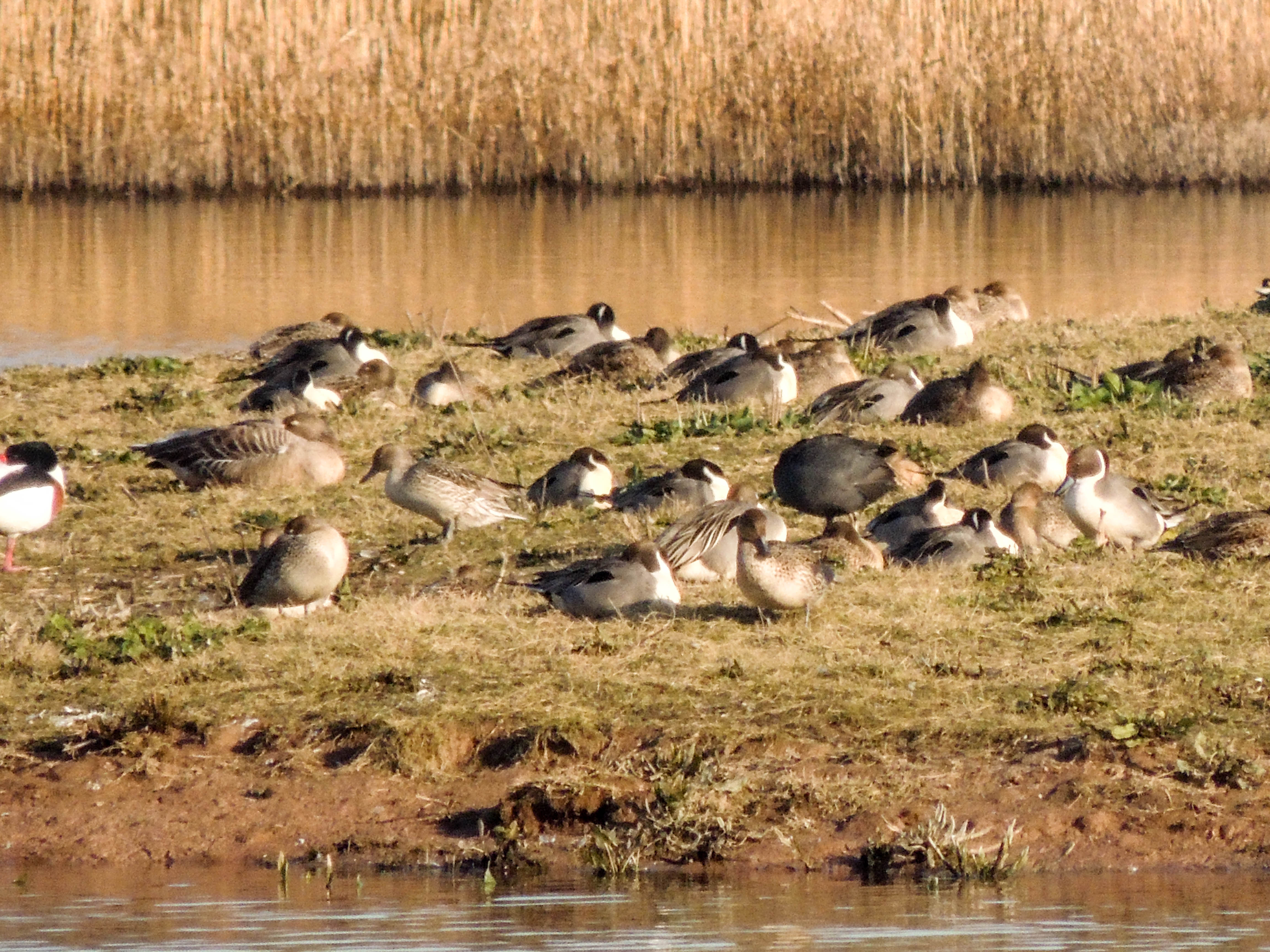 Our next stop is Powderham where a Yellow-Browed Warbler has been over-wintering but no sign. There were a number of YBW over-wintering in Devon, but a brief cold spell a couple of weeks ago seems to have moved them on (as it has for the two I saw in Dorset in January). A brief stop at Starcross follows and we quickly locate the wintering Slavonian (Horned) Grebe which has been wintering in the area. Our final stop of the day is the RSPB reserve at Bowling Green Marsh on the edge of the River Exe. There were a large number of Pintail (around 100) and Wigeon (c50) as well as other ducks. Leaving the Marsh we continued to the riverside and on the mud were Black-tailed Godwit, Dunlin, Grey Plover and Curlew. Also present were 3 Goldeneye.