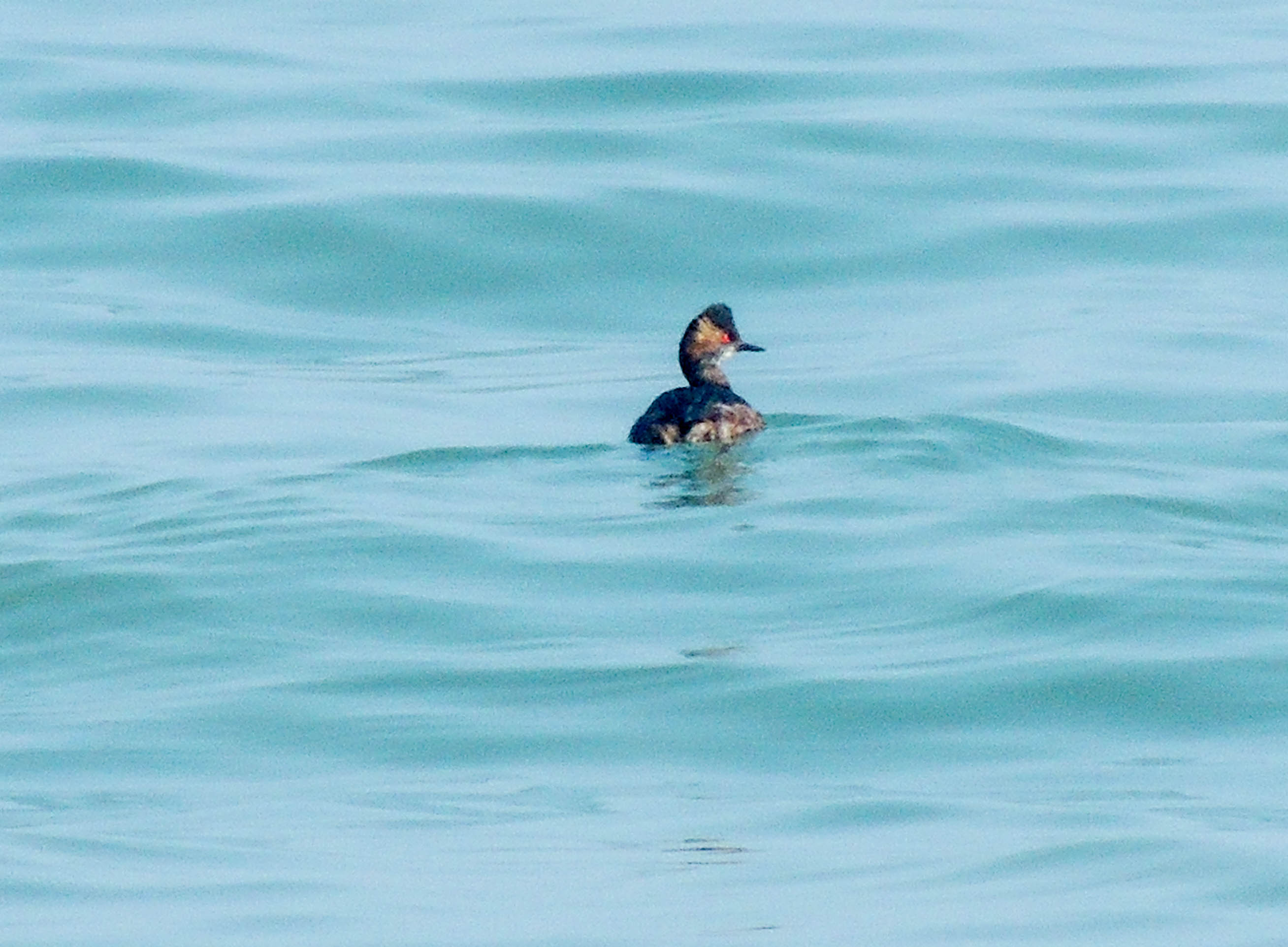 We soon located a Ring-necked Duck, a visitor from North America, a number of whom have crossed the Atlantic Ocean at the beginning of the winter. On the sea is a Black-necked Grebe.