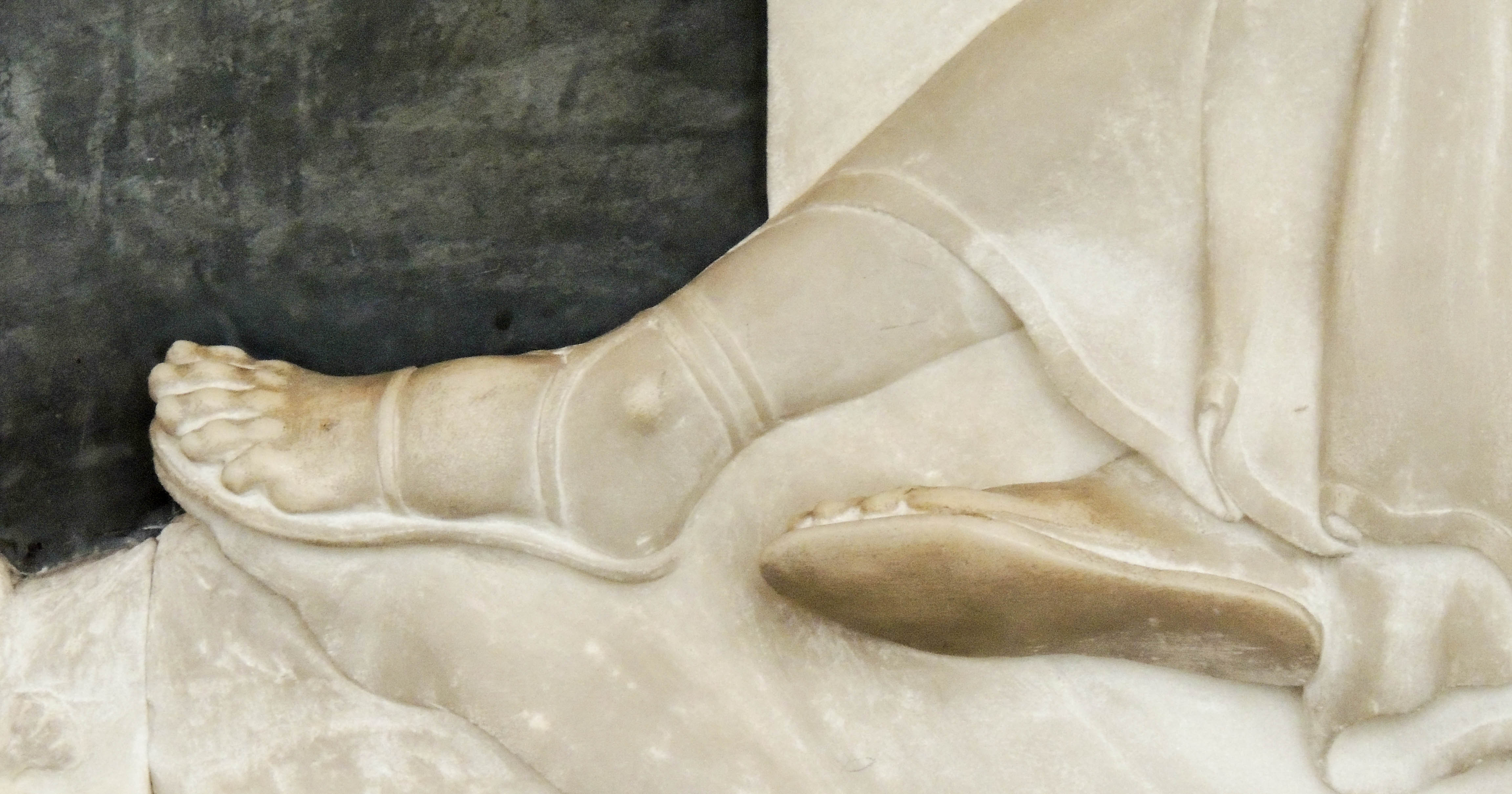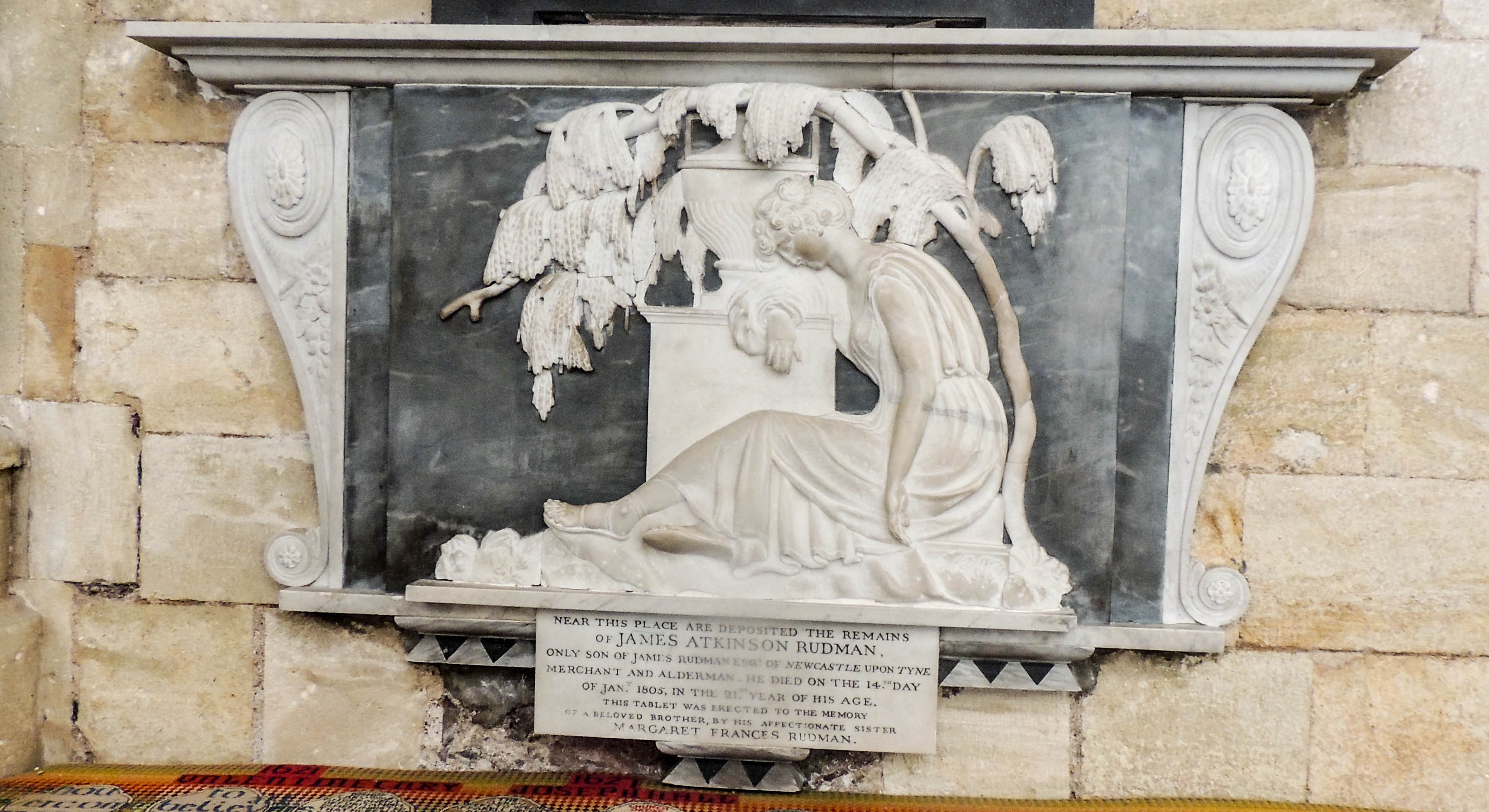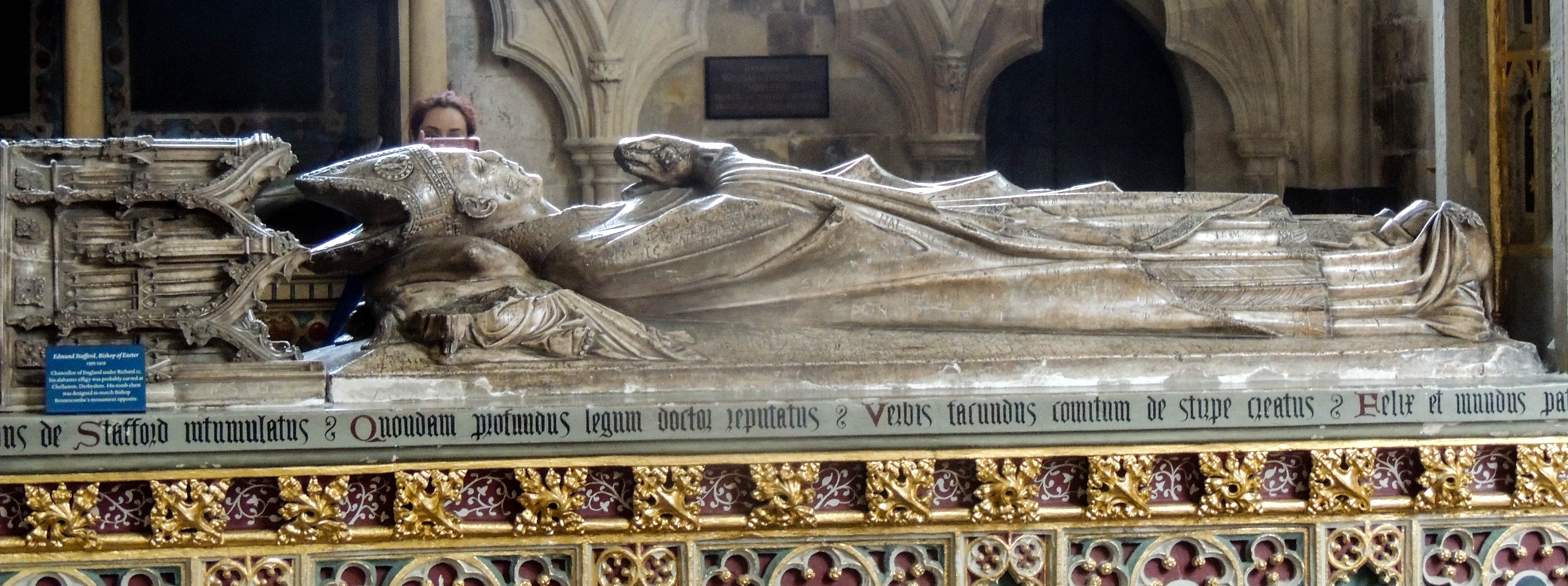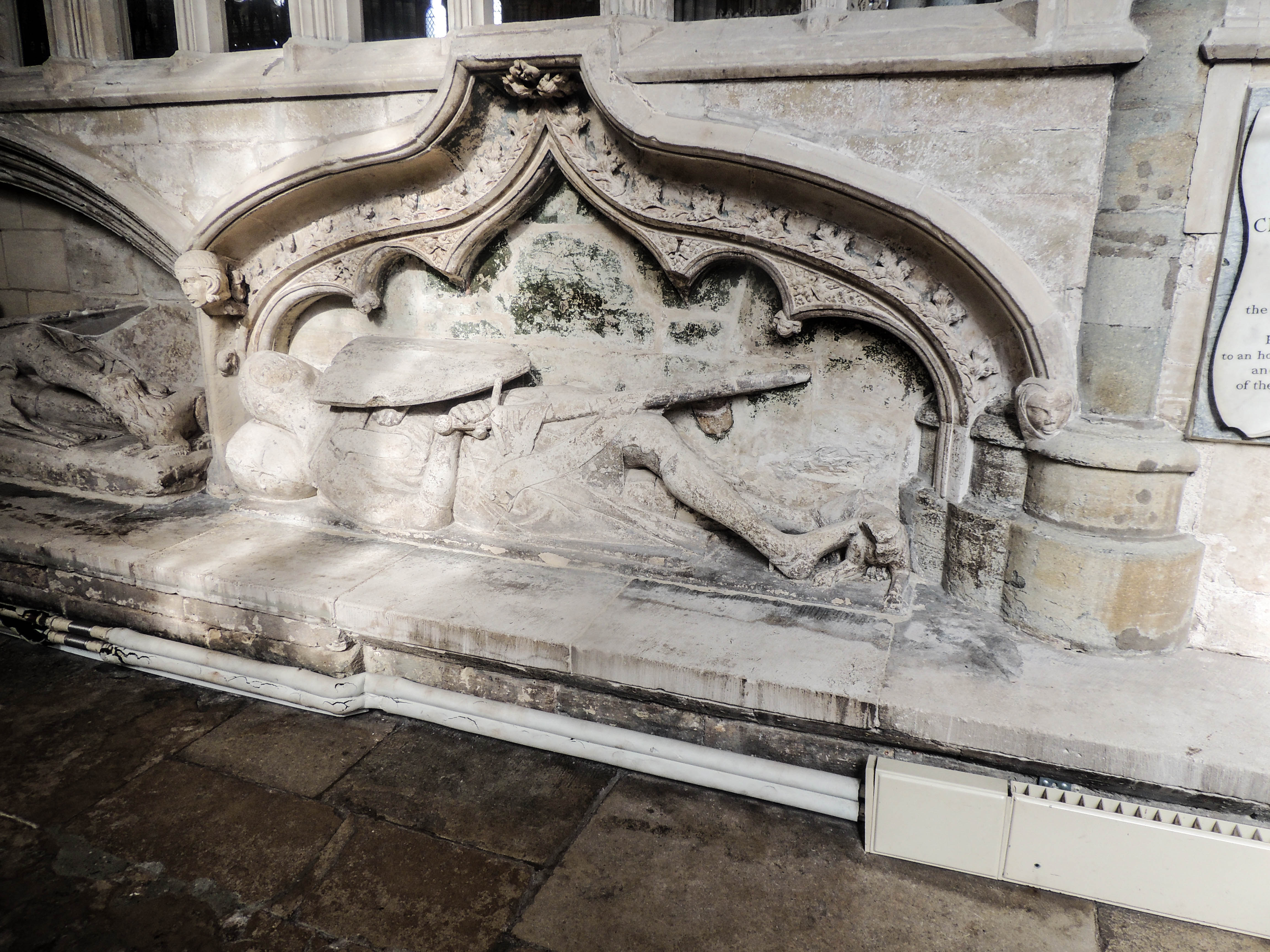 The strange case of the Lady with two left feet. This is a sculpture on the tomb of John Atkinson Rudman, a merchant and Alderman of Exeter. The sculptor has strangely given the lady two left feet. Did he hope no-one would notice his mistake?
