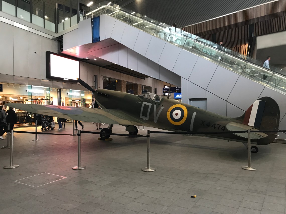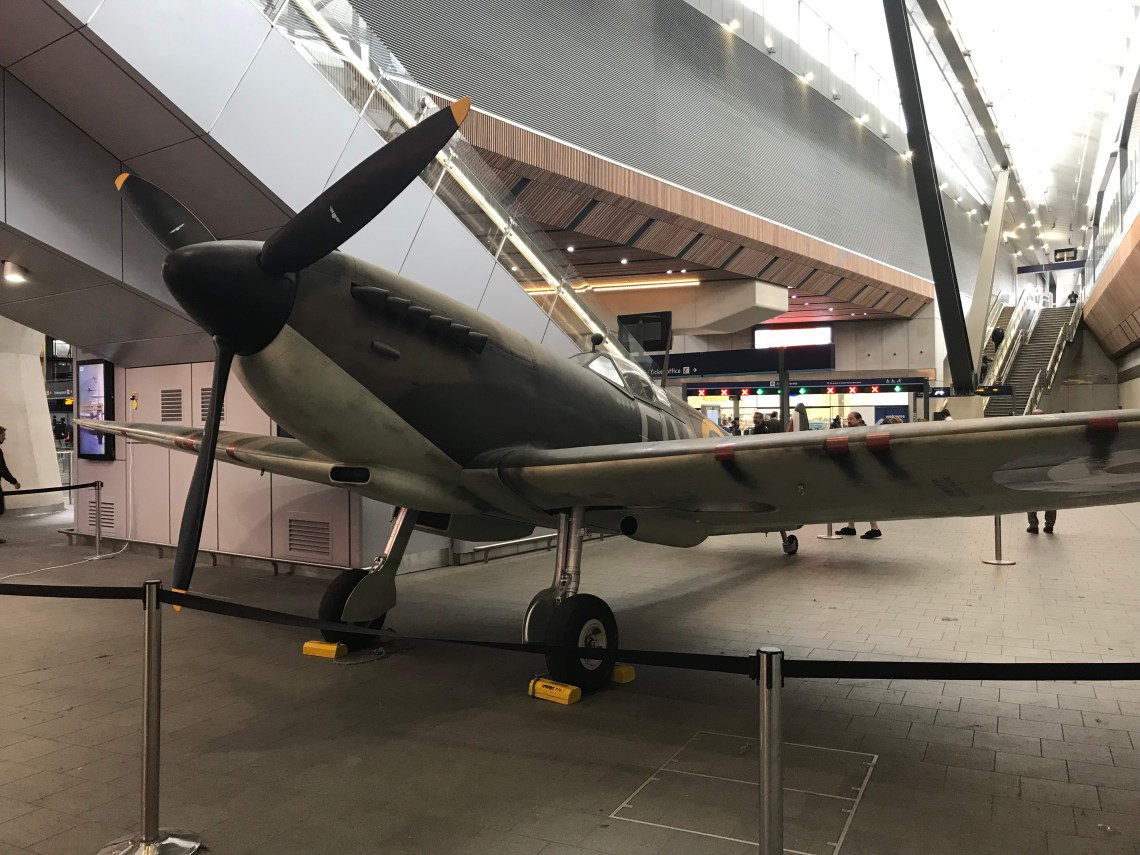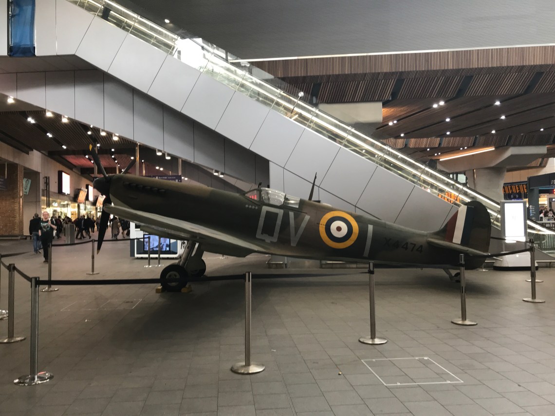 Travelling through London Bridge railway station yesterday I was surprised to see a Spitfire on the concourse.