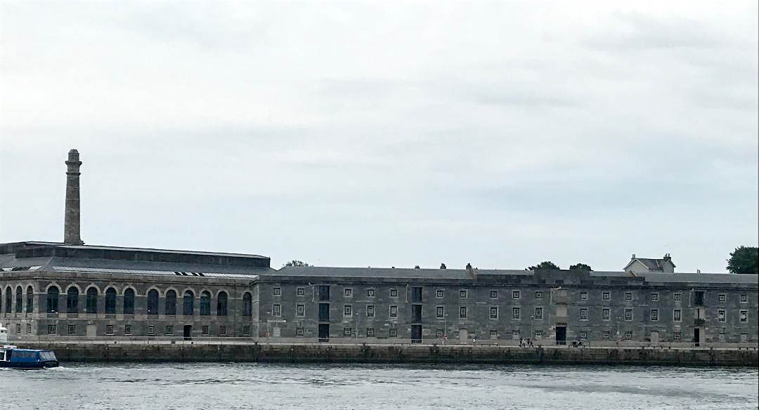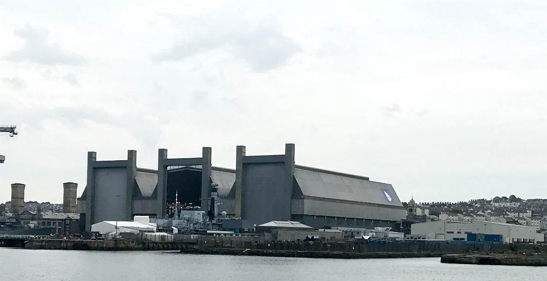 Crossing Plymouth Sound, a large natural harbour, we first pass the Old Dockyard and Provisioning centre, which has now been converted to residential and business use.