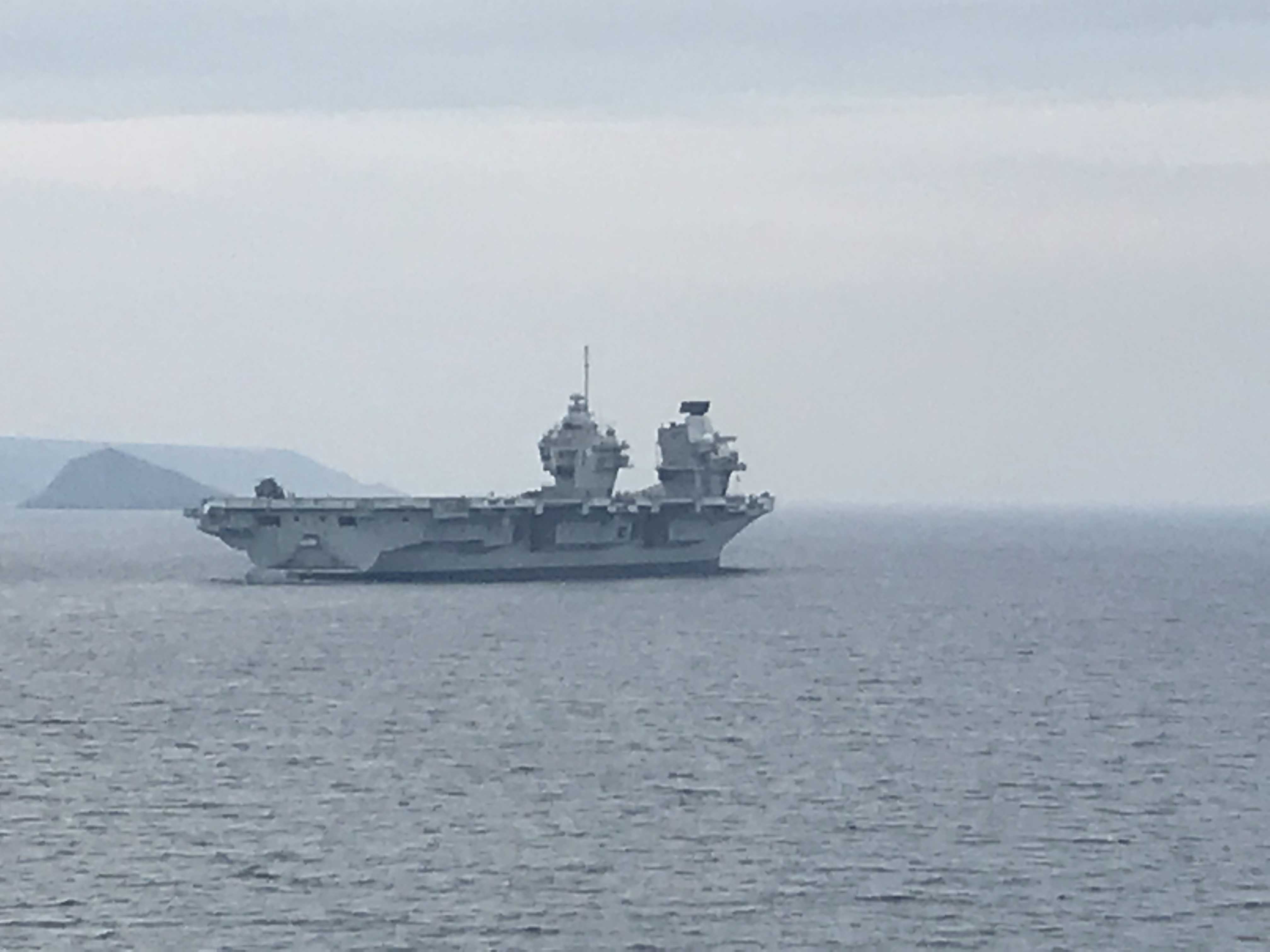 Travelling back across the sound there are views of HMS Queen Elizabeth, one of the two new Aircraft Carriers in the Royal Navy, which is moored outside the harbour.