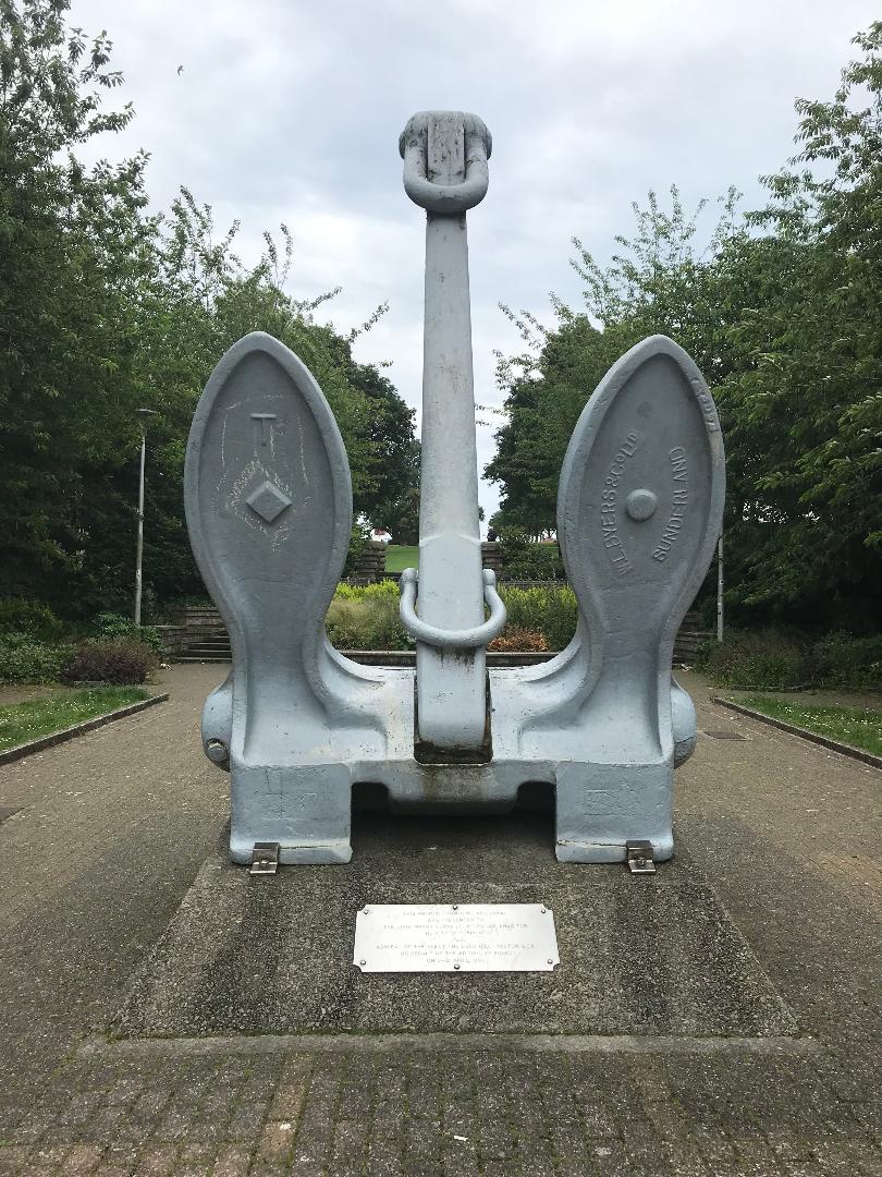 The Anchor from HMS Ark Royal, an aircraft carrier was presented by the Royal Navy to the City of Plymouth in April 1980