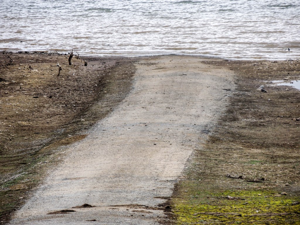 It is quite odd to see roads going down to the water and the remains of trees, which are all that can be seen of the valley that existed here before the dam was built.