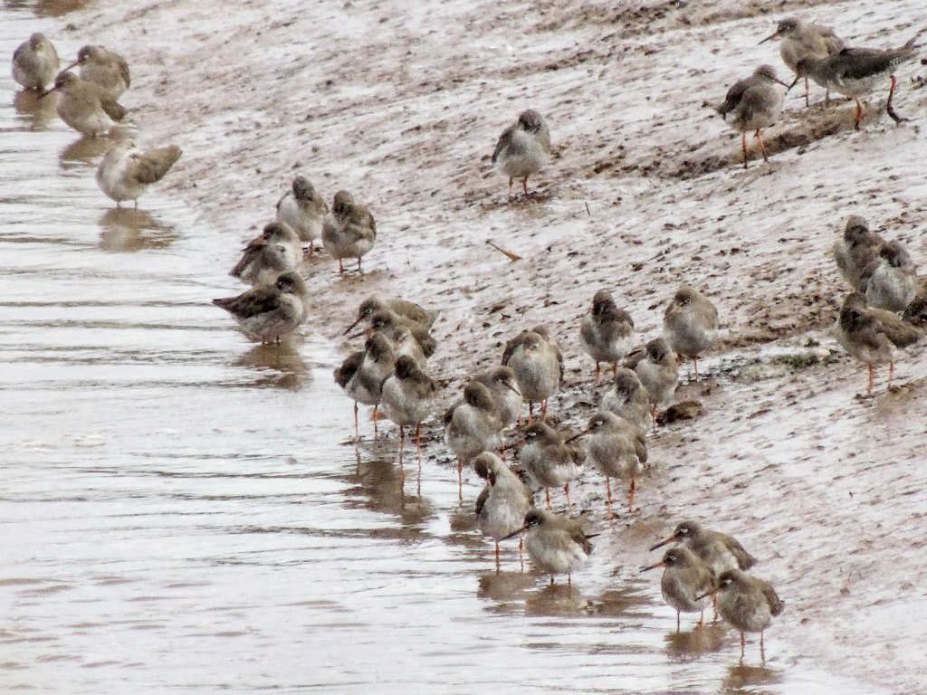 Our first stop is the hide but apart from some ducks there is little else to see and we are told that the Dowitcher is on the estuary, so we head down the lane and, together with a number of other birders, began to scan the waders on the mud. Unfortunately, most of the birds are on the far side of the estuary makes identification more difficult.