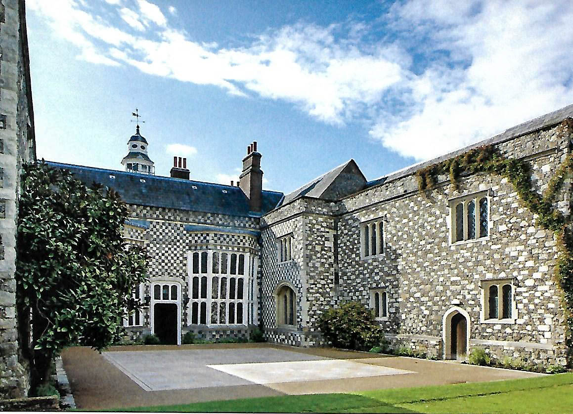 Hall Place lies outside the ancient village of Bexley on the south-east edge of London. It was built in 1537 for Sir John Champneys, a wealthy London merchant. It is believed that much of the building material used in its construction was ‘recycled’ from the nearby monastery at Lesnes Abbey, which had been closed following the dissolution of the monasteries under Henry VIII. In 1649, the house was sold to another city merchant, Sir Robert Austin who expanded the building to double its original size. He made little attempt to harmonise his new building with the original style and thus the whole building looks very different whether viewed from the front or from the back.