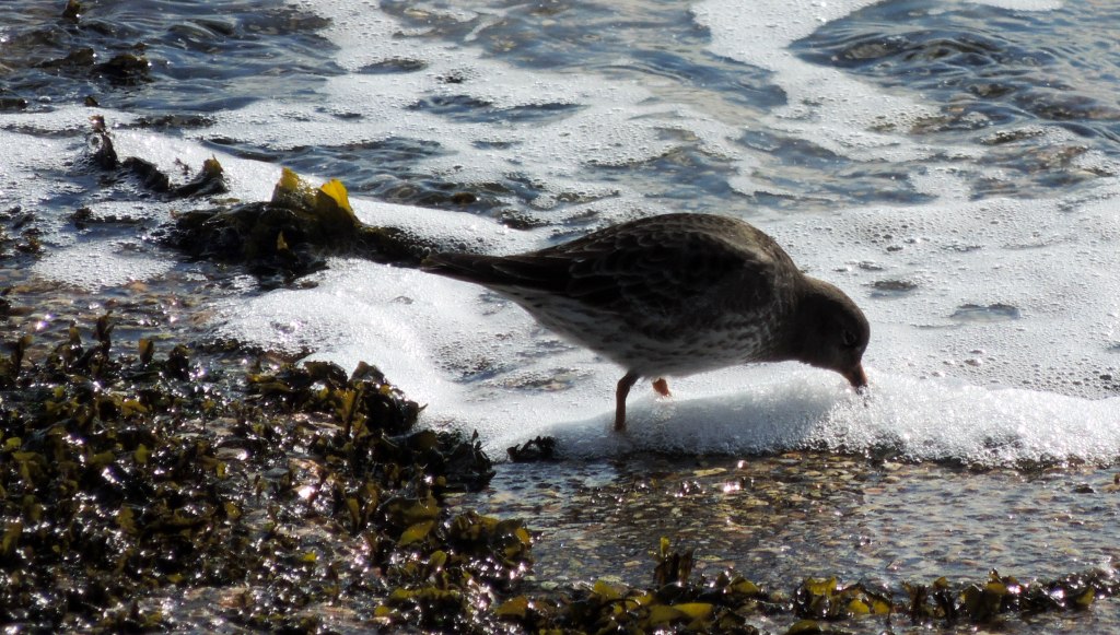 The waves are battering the rocks, but I manage to find 2 Purple Sandpipers braving the waves (there have been up to 12 there this winter).