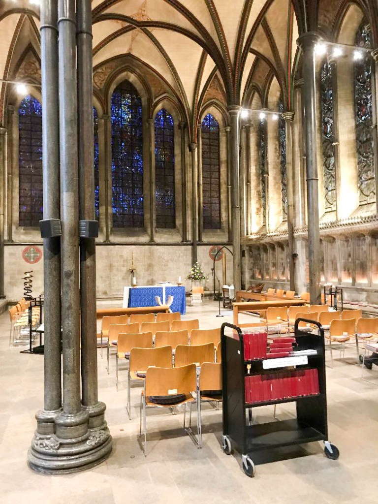 At the end of the 12th century, relations between the military and the clergy, whose cathedral church was sited within the castle defences, at Sarum, just north of the city were bad. So early in the 13th century the clergy decided to move to a new site in the river valley a few miles to the south. The foundation stone was laid in April 1220 and the cathedral buildings were finished by 1260. The iconic tower and spire were added in the 14th century – when the spire at Lincoln cathedral collapsed in 1549, it became the tallest spire in the country. However, it has taken a lot of rebuilding work over the centuries to prevent it from going the way of many of its contemporaries and collapsing.