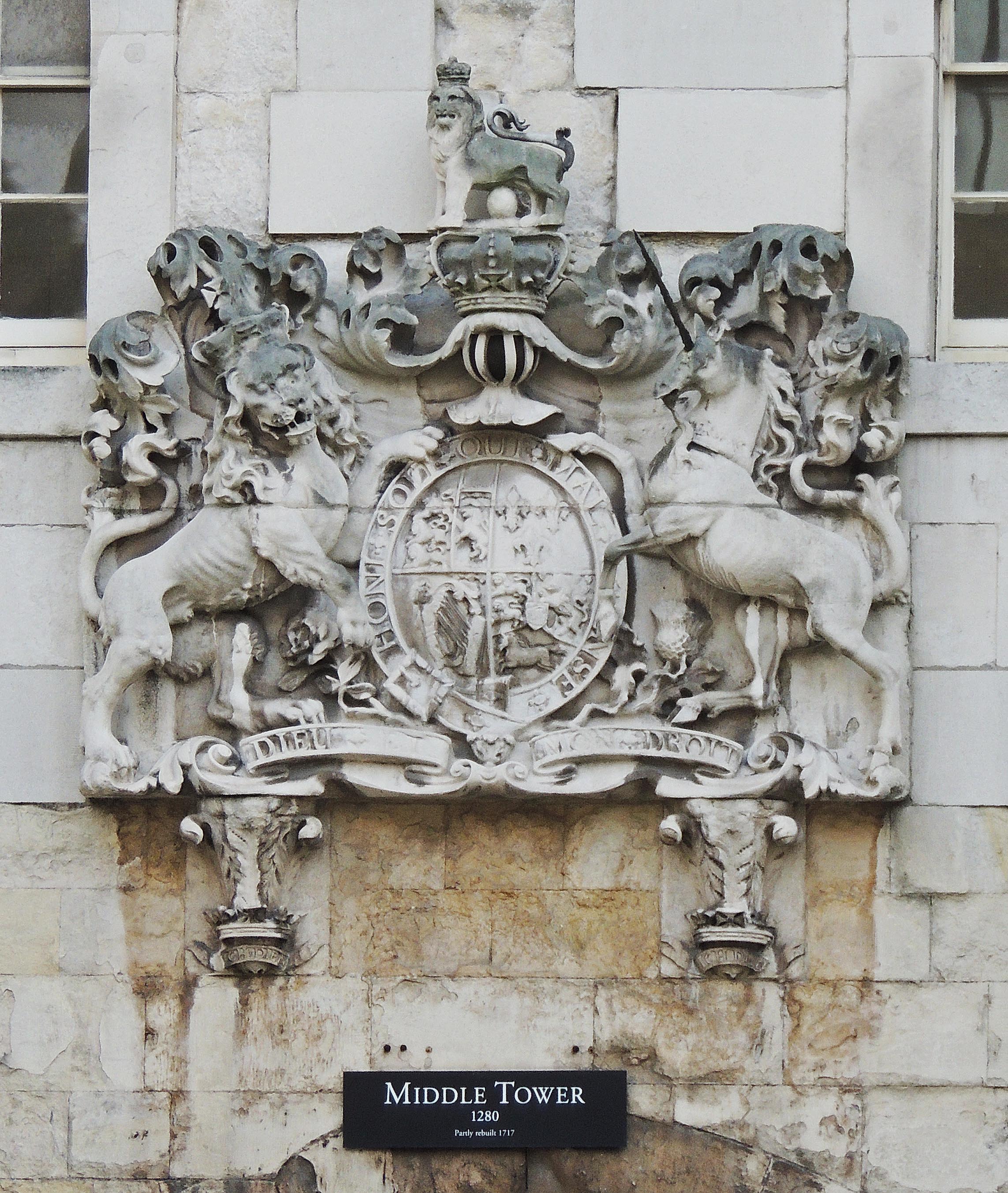 At the Tower side of the moat is the Byward Tower, which also dates from around 1280. It is believed the name came from its proximity to the warder’s hall – ‘By the warders’ becoming shortened in time to ‘Byward’. The tops of the Tower have been redeveloped in the 17th and 18th century replacing the original medieval structures.