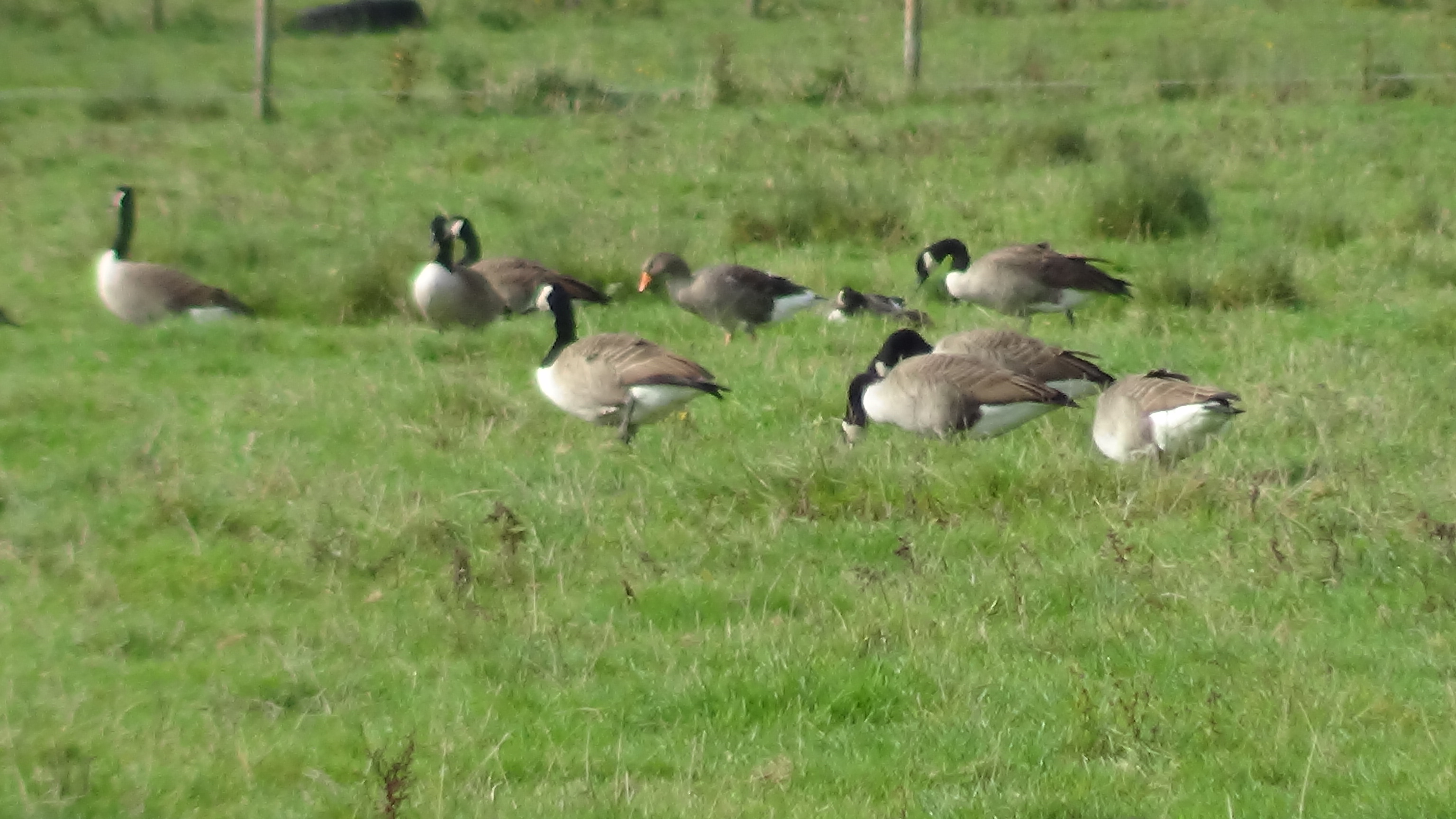 Flock of Canada Geese with a single Greylag Goose (centre)