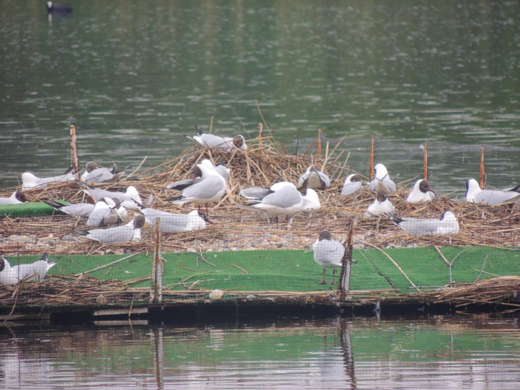Retracing my steps, I visited Gadwall and Tern hides which overlook the two main lakes. On the south lake the Black-headed gulls were already choosing their nest spaces and on the north lake were a pair of Great Crested Grebes and a Little Grebe showing off their breeding plumage in the sun.