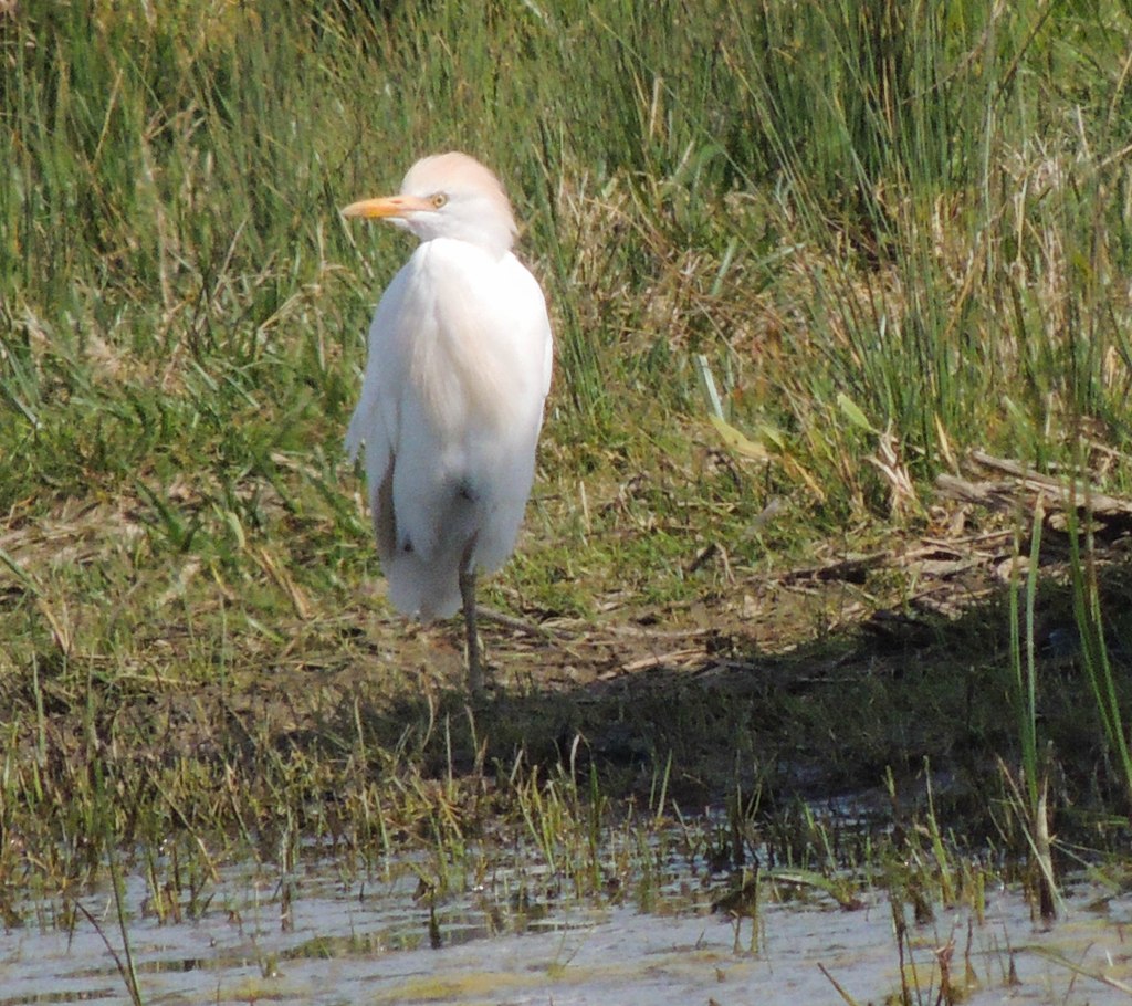Thinking about it it, I guess it must be about two years now since I last visited the RSPB reserve at Rainham Marshes, so it was great to visit again yesterday with two friends, Nicole and Andrew. The excellent birding started as soon as we left the Visitor Centre as we spotted two Cattle Egrets on the marsh. This once rare visitor to the UK is becoming far more common and it is no longer a surprise to see them. A cuckoo called and then flew across the marsh. At one point we had two calling from different directions. We continued onto Purfleet Hide, where one of the Egrets flew in and landed on the scrape.