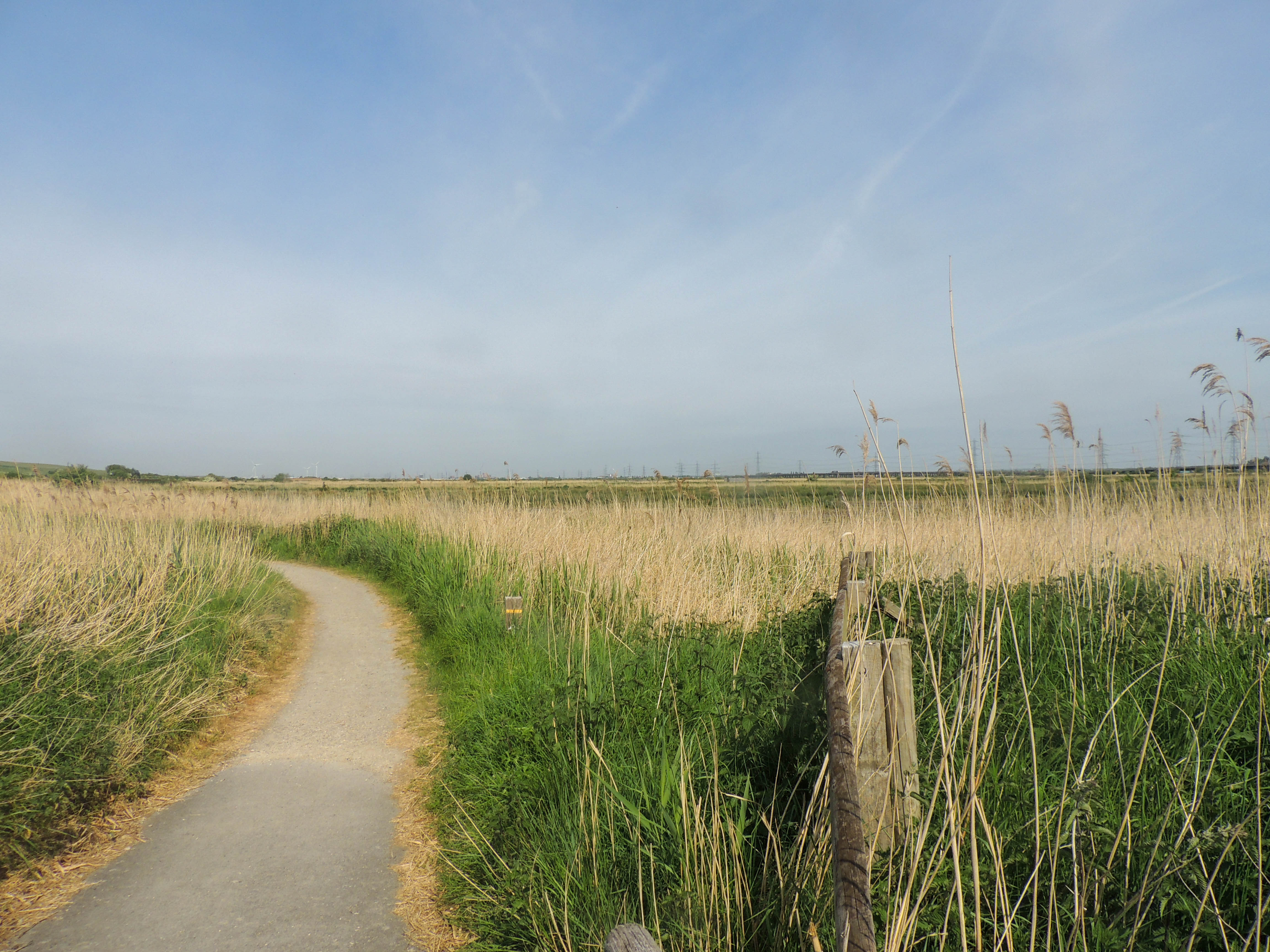 Having reached the mid-point of the circuit we turned back towards the visitor centre. a Great White Egret flew into land on Aveley pools, which meant that together with the commoner Little Egrets, we had recorded all three of our resident white Egrets on the reserve.