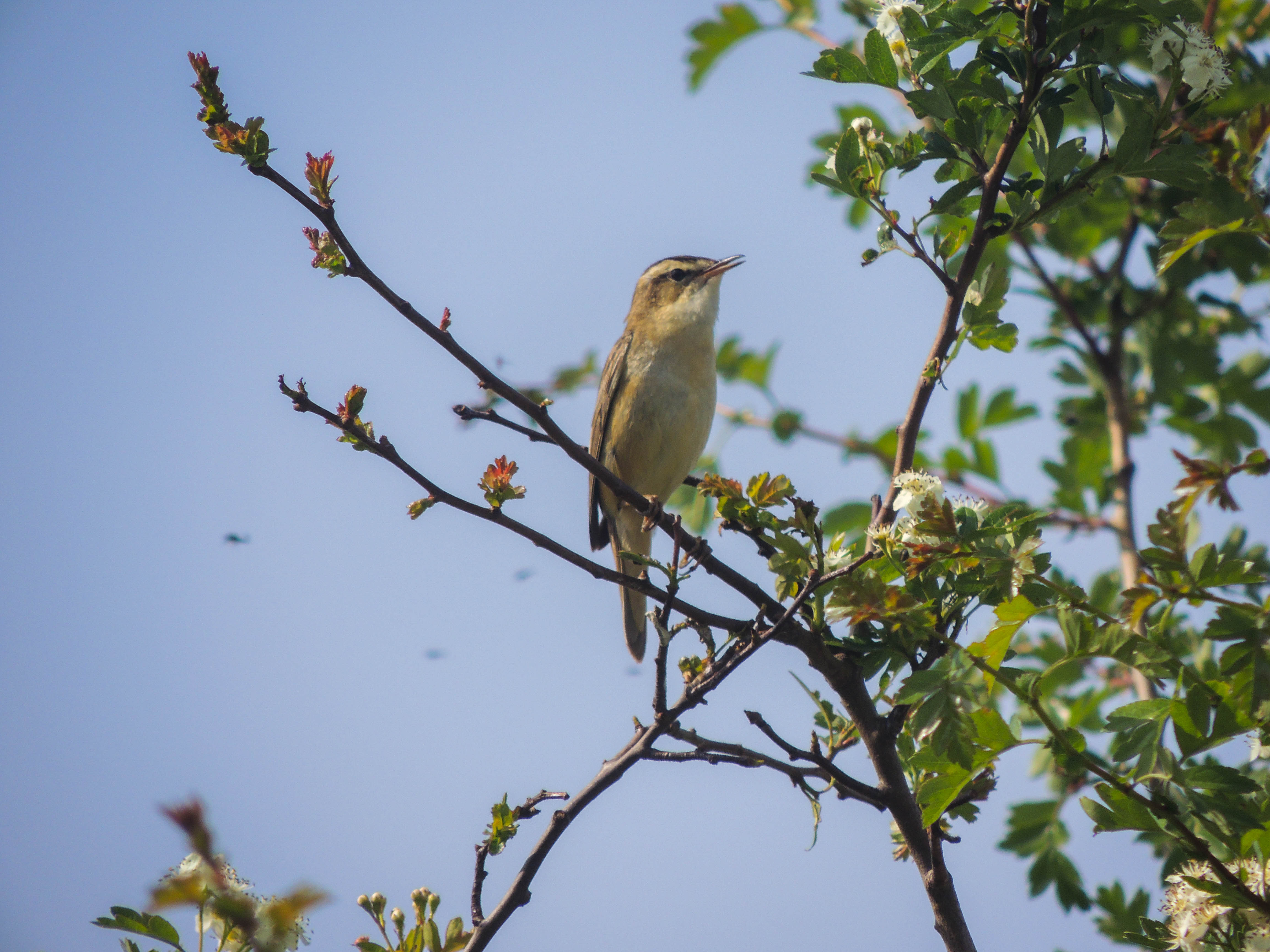 Moving on we were serenaded by Cetti’s, Reed and Sedge Warblers plus a few Blackcaps and Whitethroats. The Sedge Warbler’s were particularly obliging, singing in the sunshine from their perches in the reeds or at the top of bushes and trees.
