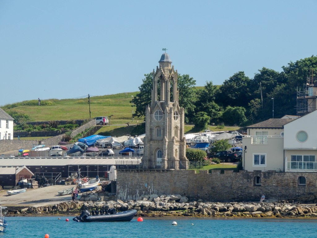 Swanage was originally but became a seaside town during the Victorian period. The clock Tower near Peveril point originally stood at the south side of London bridge in London. It was erected in 1854 to commemorate the Duke of Wellington, but within 10 years it was deemed an obstruction to traffic and so was removed and sold to Swanage where it was re-erected in 1867 on the sea front. sadly the clock faces and mechanism never arrived in Swanage and so there remains no clock in the clock tower.