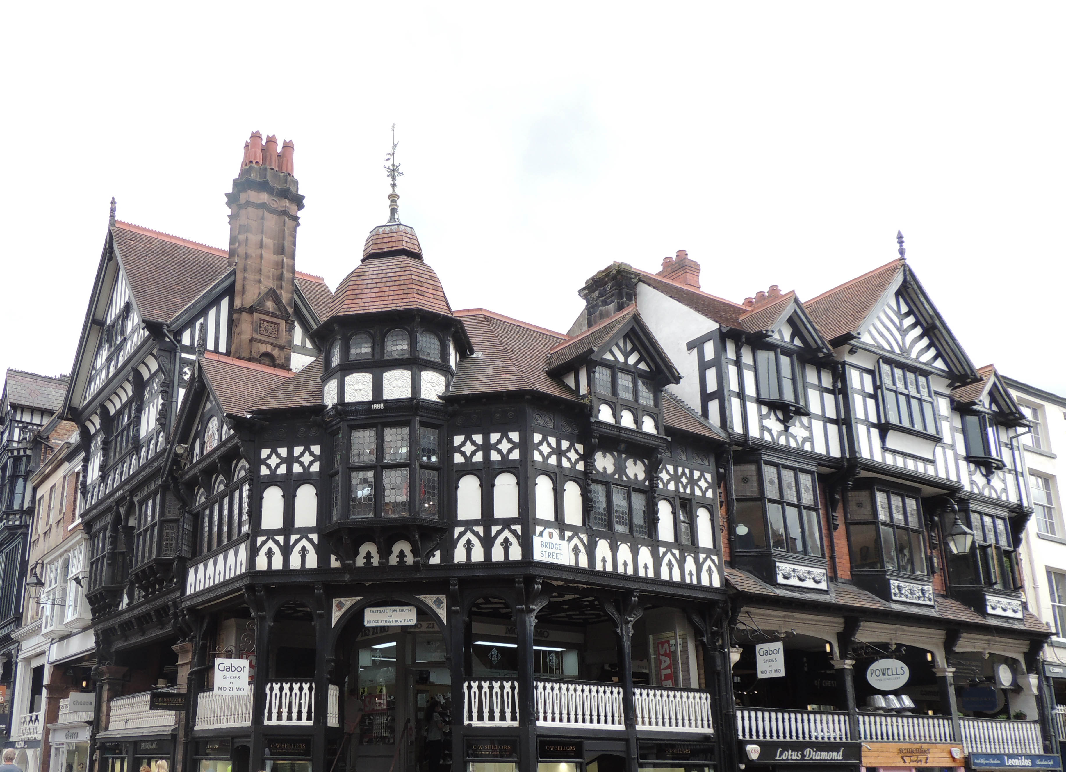 But it is medieval Chester that is most in evidence today with almost intact medieval walls and medieval buildings. Many of these were restored during the Victorian ‘Black and white Revival movement’ which was an architectural movement from 1811 to around 1900 which formed part of a wider ‘Tudor Revival’ in society. Most notable are those in the Chester Rows with their two floors of shops.