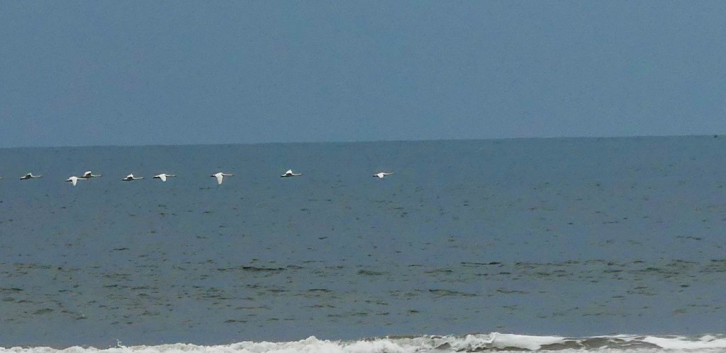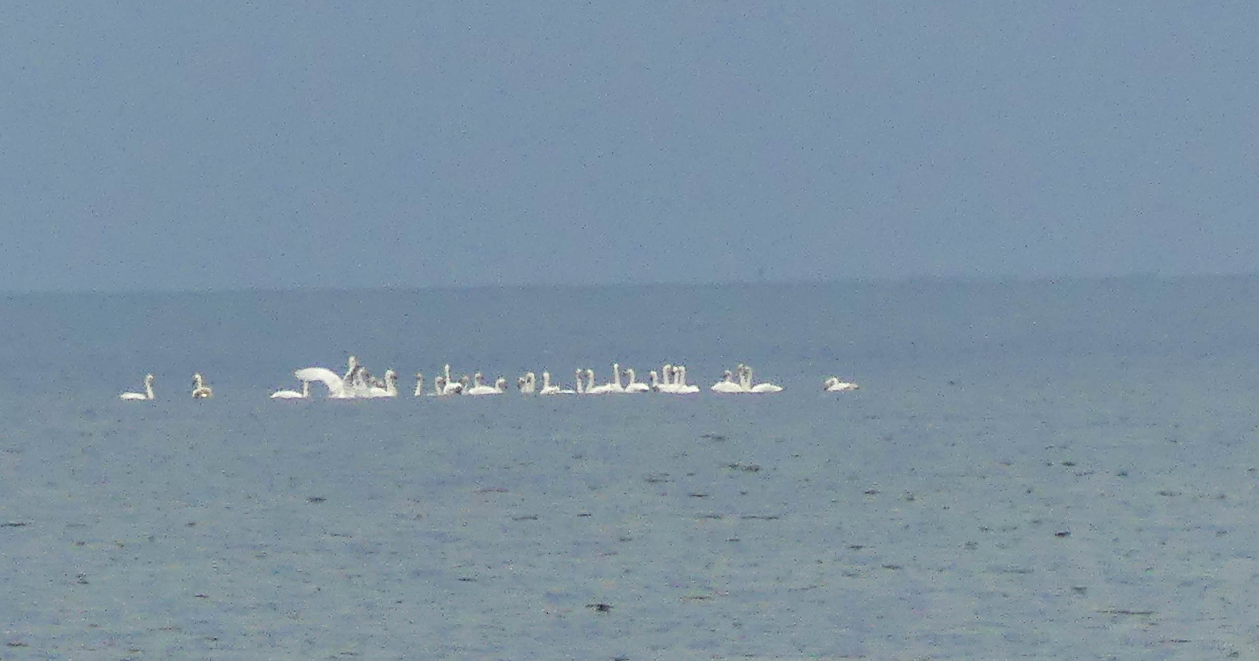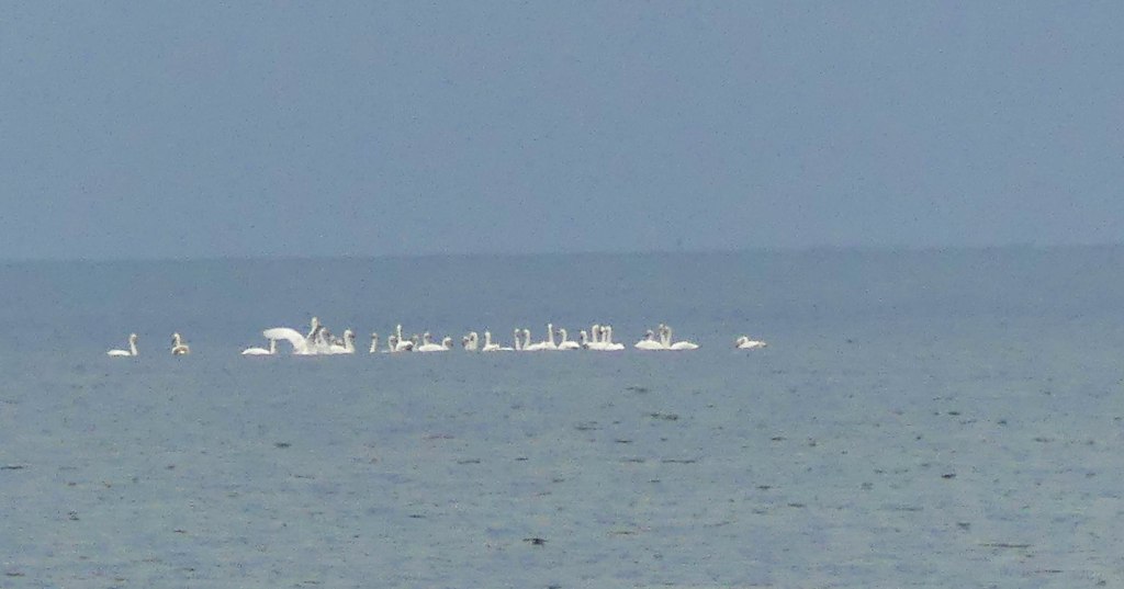 On Saturday morning, we retraced our steps to the beach and saw a similar range of birds to the previous evening. We saw a large party of Whooper Swans fly in off the sea, perhaps newly arrived from their breeding grounds. Shortly before reaching land, they settled on the sea, not the place you normally expect to see a flock of Whooper Swans.