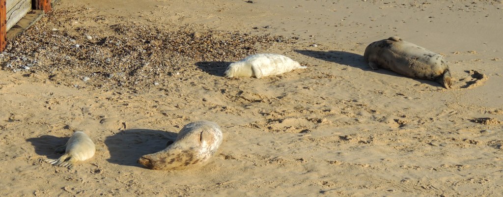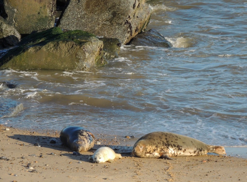 Horsey Gap has over 2000 adult seals using the beach. The pups are very different from their mothers, having white fur and lots were present on the beach. We just missed seeing a pup being born by minutes.