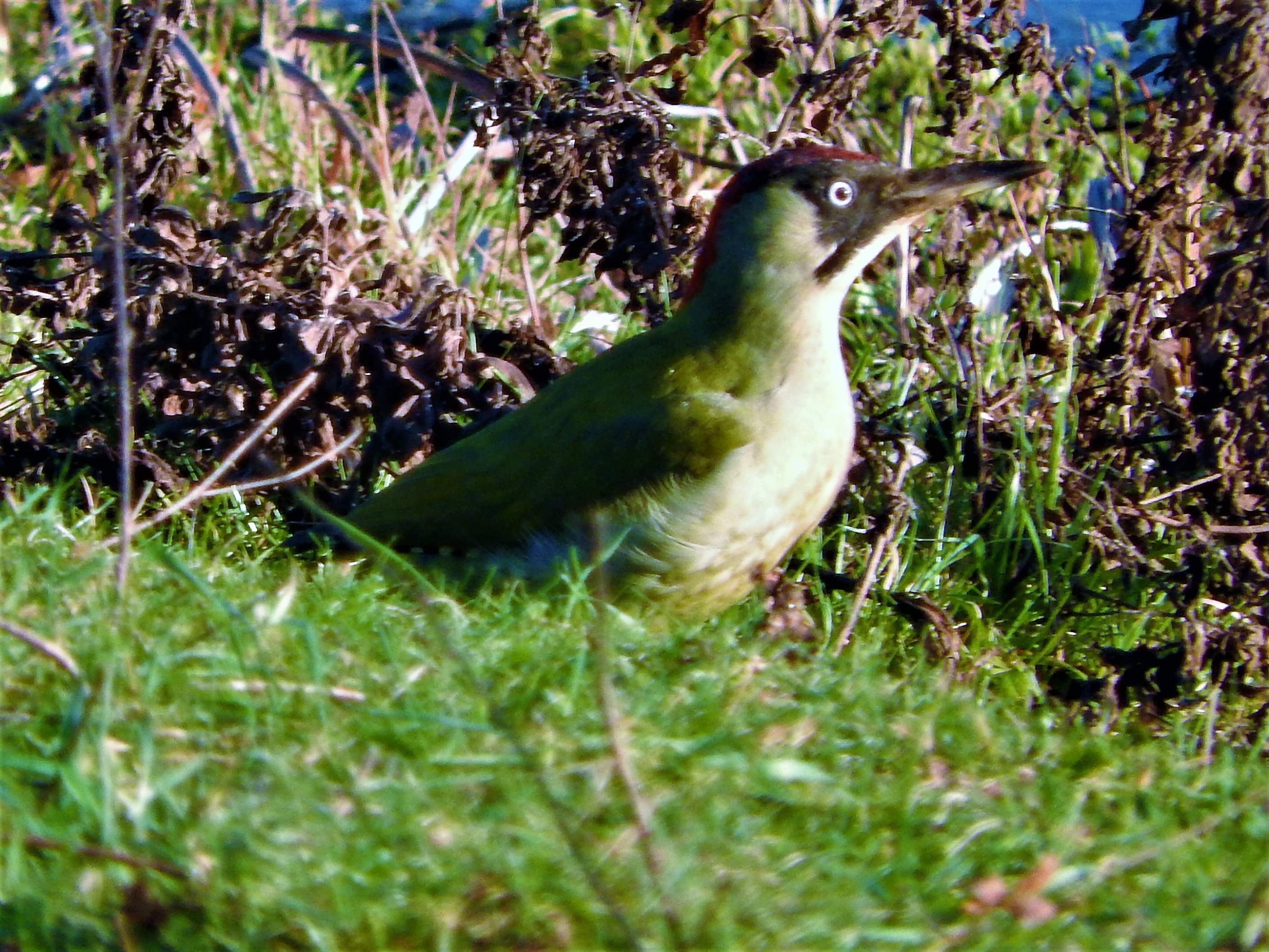 Given the sparsity of birds, we decided to return to Dulverton hide to continue to look for the Bittern. We had only been there about 10 minutes when we heard that a Bittern was showing well on a small pool on the north side of the reserve. So, we hot-footed it over there. As we approached the pool, I saw some movement in the reeds and was lucky to see the Bittern disappearing back into the reeds. Keith who was a little way behind me sadly didn’t see it. We waited for some time to see if it would reappear, but it didn’t, although we did hear a Water Rail calling from the reeds and good views of Reed Bunting. So we made our way to the Wildside Hide to look over the reservoir lake, adding Snipe, Wigeon and Green Woodpecker to our list for the day.