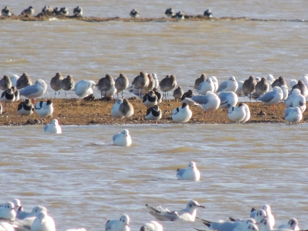 Here the highlight was a Long-billed Dowitcher, a rare visitor from America, which has been wintering with a flock of Black-tailed Godwit. It was unfortunately asleep all the time I was there but although it has similar plumage to the Godwits, the size difference and different leg colour were clearly visible.